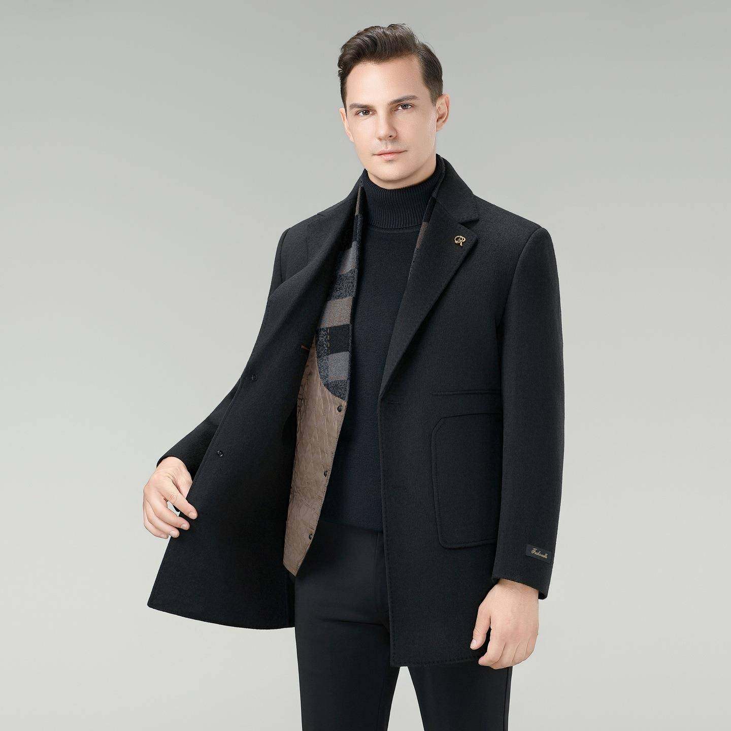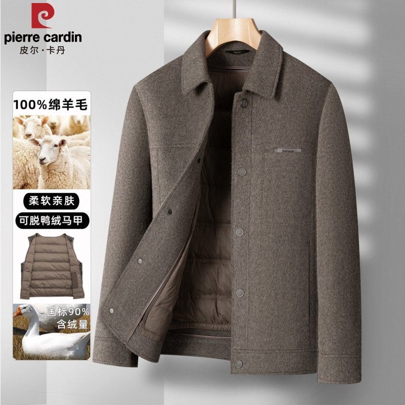 皮尔卡丹男款纯羊毛夹克大衣羽绒内胆高级感商务毛呢外套2025新款
