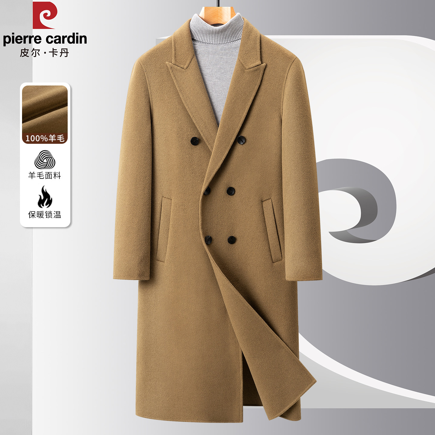皮尔卡丹男款纯羊毛大衣长款西装领高级感双面呢外套双排扣英伦风