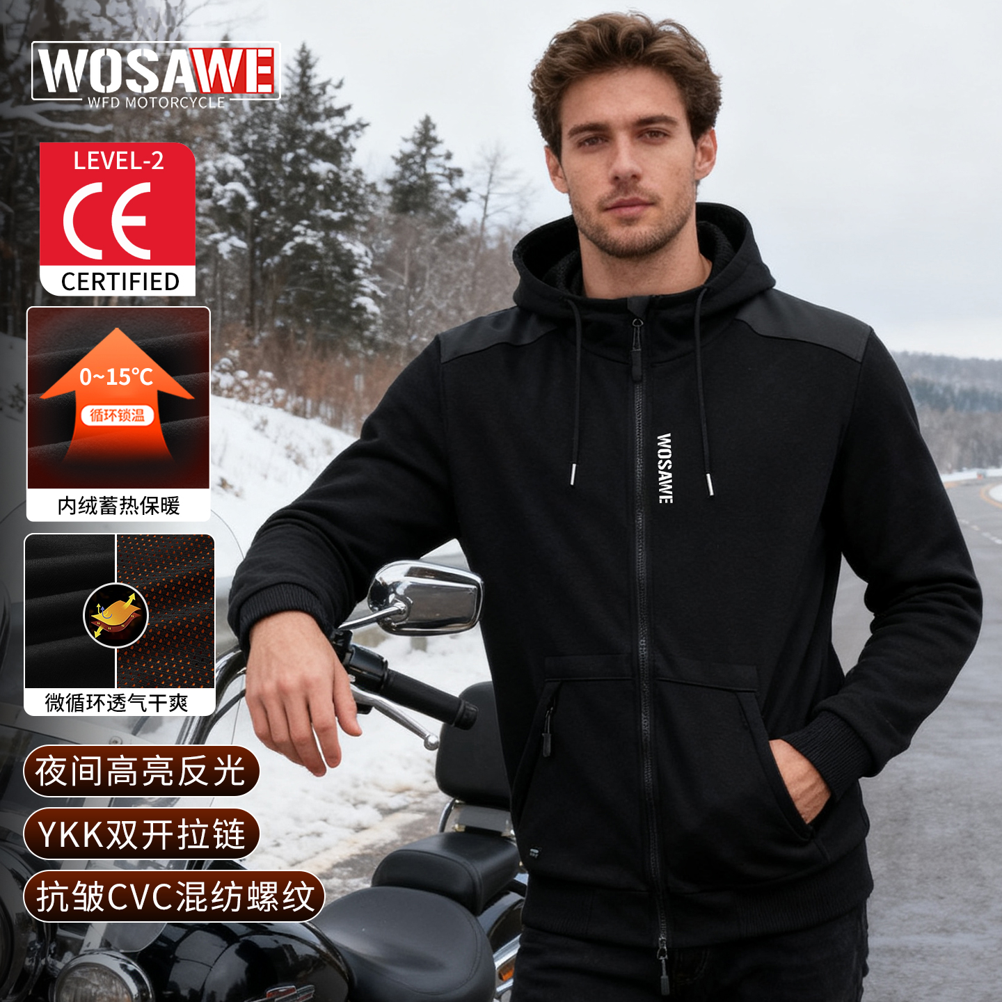 沃萨维摩托车骑行服男女秋冬机车连帽外套防风保暖软甲衣骑士上衣
