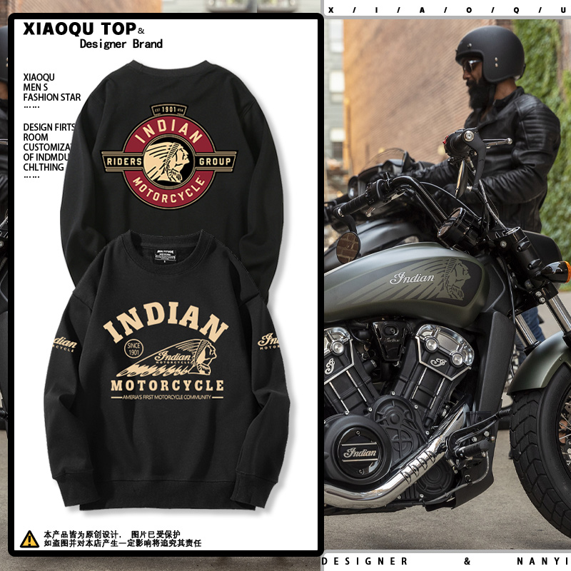 印第安摩托重机车巡航车骑行卫衣男女春秋美式百搭宽松上衣服潮流
