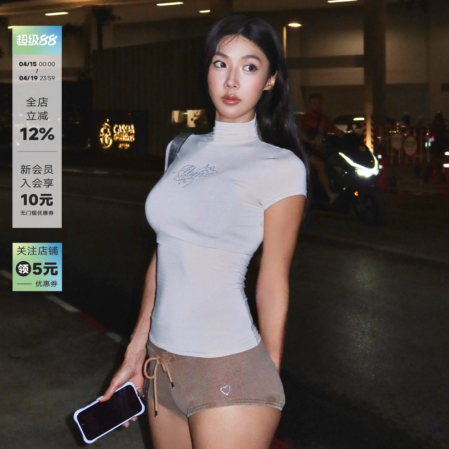 NEVA HU 率性outfit 半高领短袖t恤女半袖打底衫修身中袖针织上衣