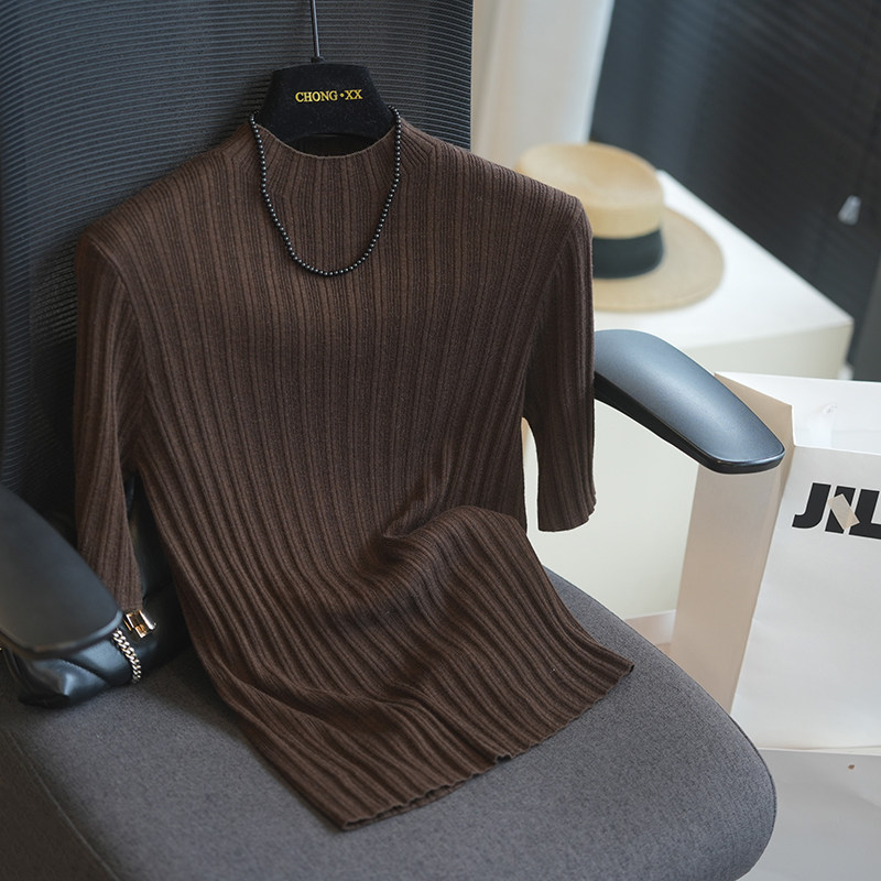 冰丝短袖女修身休闲半高领T恤上衣洋气2026新款夏季轻熟风针织衫