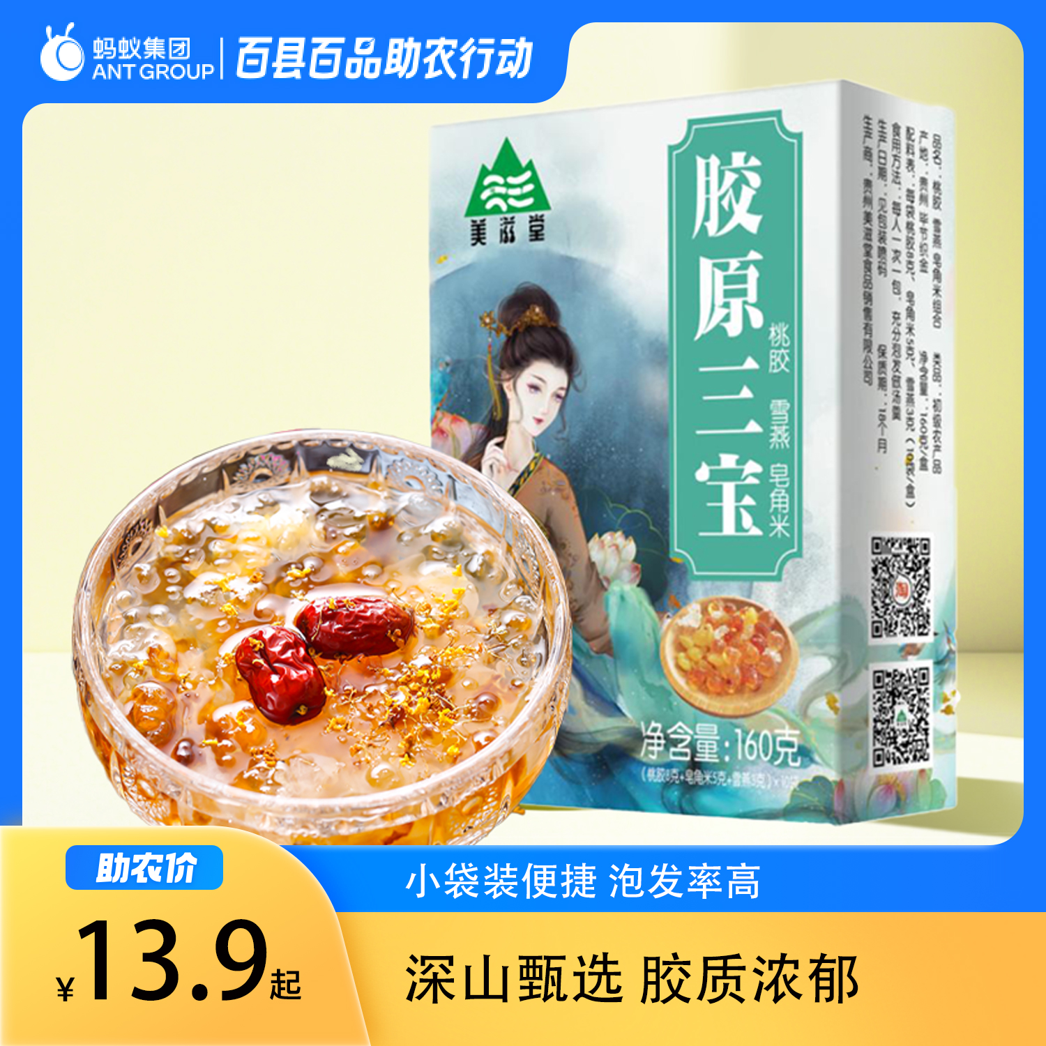 桃胶雪燕皂角米免煮即食组合无杂质银耳云南胶颜三宝羹美容养颜喝