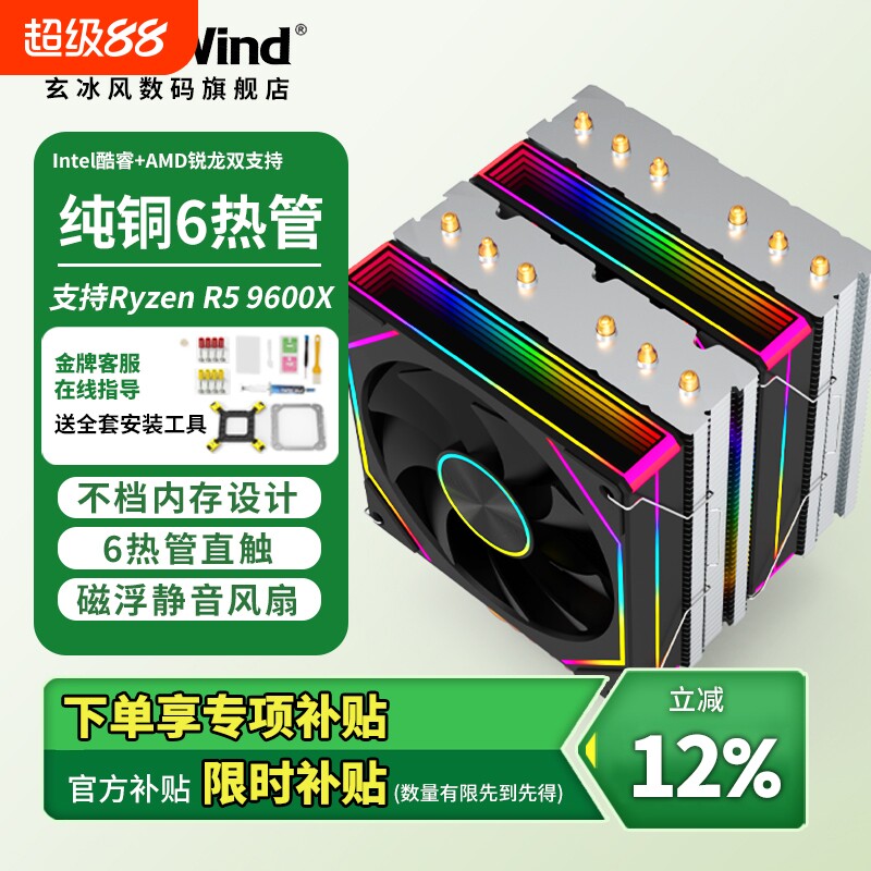 玄冰风6铜管静音i5 CPU散热器1700风扇R7台式机电脑2011风冷X99
