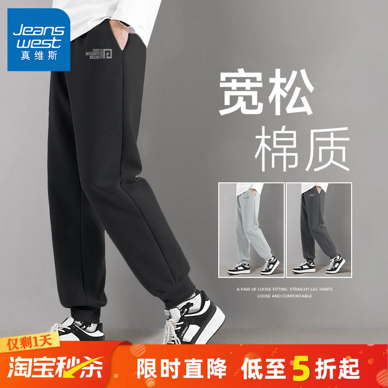 GV真维斯休闲运动裤男春秋季黑色宽松束脚裤子男款透气跑步卫裤A