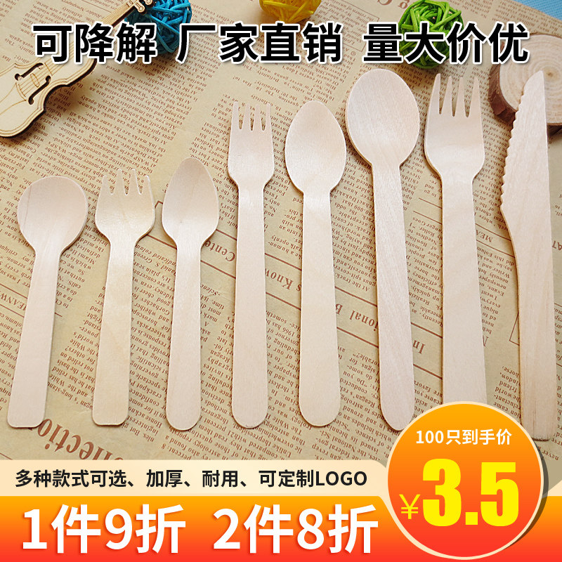 一次性木勺冰激凌勺木质西餐刀叉勺甜品勺长柄勺饭勺独立包装包邮