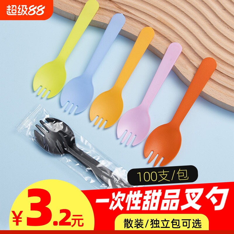 一次性勺子叉勺水果单独包装冰激凌塑料小叉勺加厚蛋糕甜品勺商用