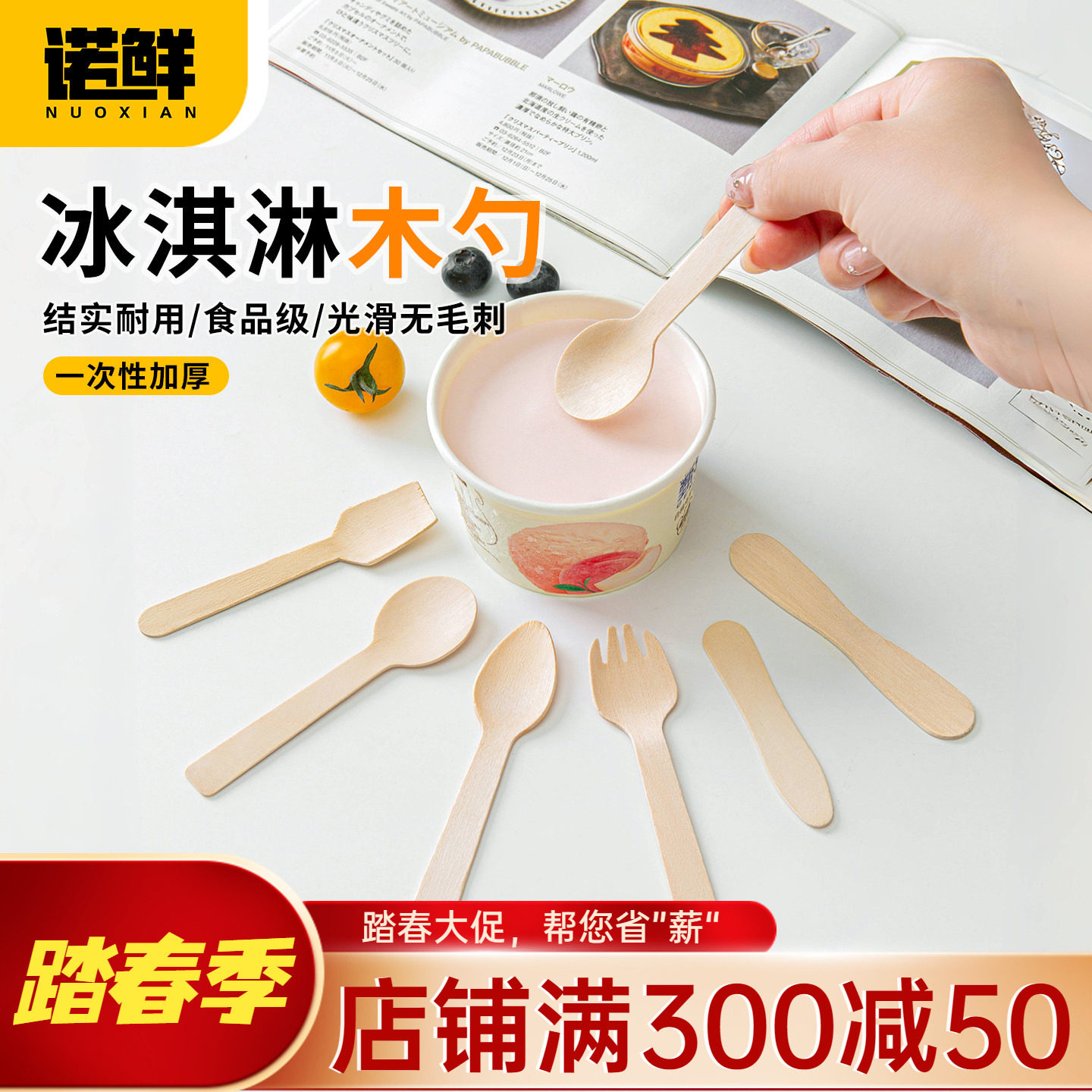 冰淇淋木勺子一次性试吃小勺冰激凌冰糕独立木勺叉勺甜品勺可降解