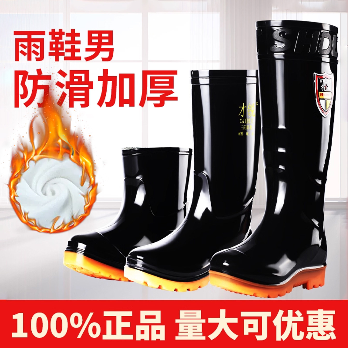 短筒雨鞋冬天加绒男款防水胶鞋2025新款钓鱼雨靴保暖冬季男式水鞋