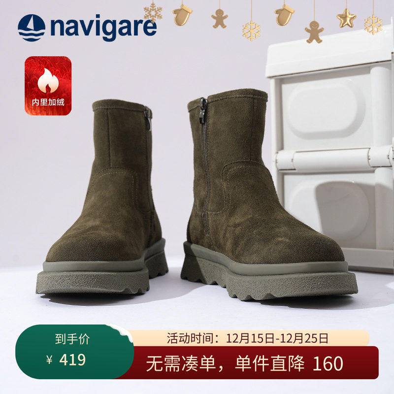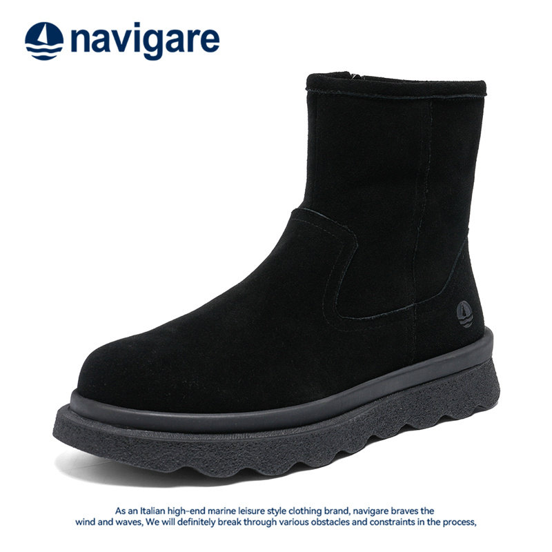Navigare意大利小帆船牛皮加绒男靴2025冬季新款男式马丁切尔西靴