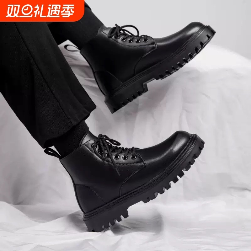 2025秋季新款男士皮靴秋季新款英伦风马丁靴男式靴子皮面纯色黑色