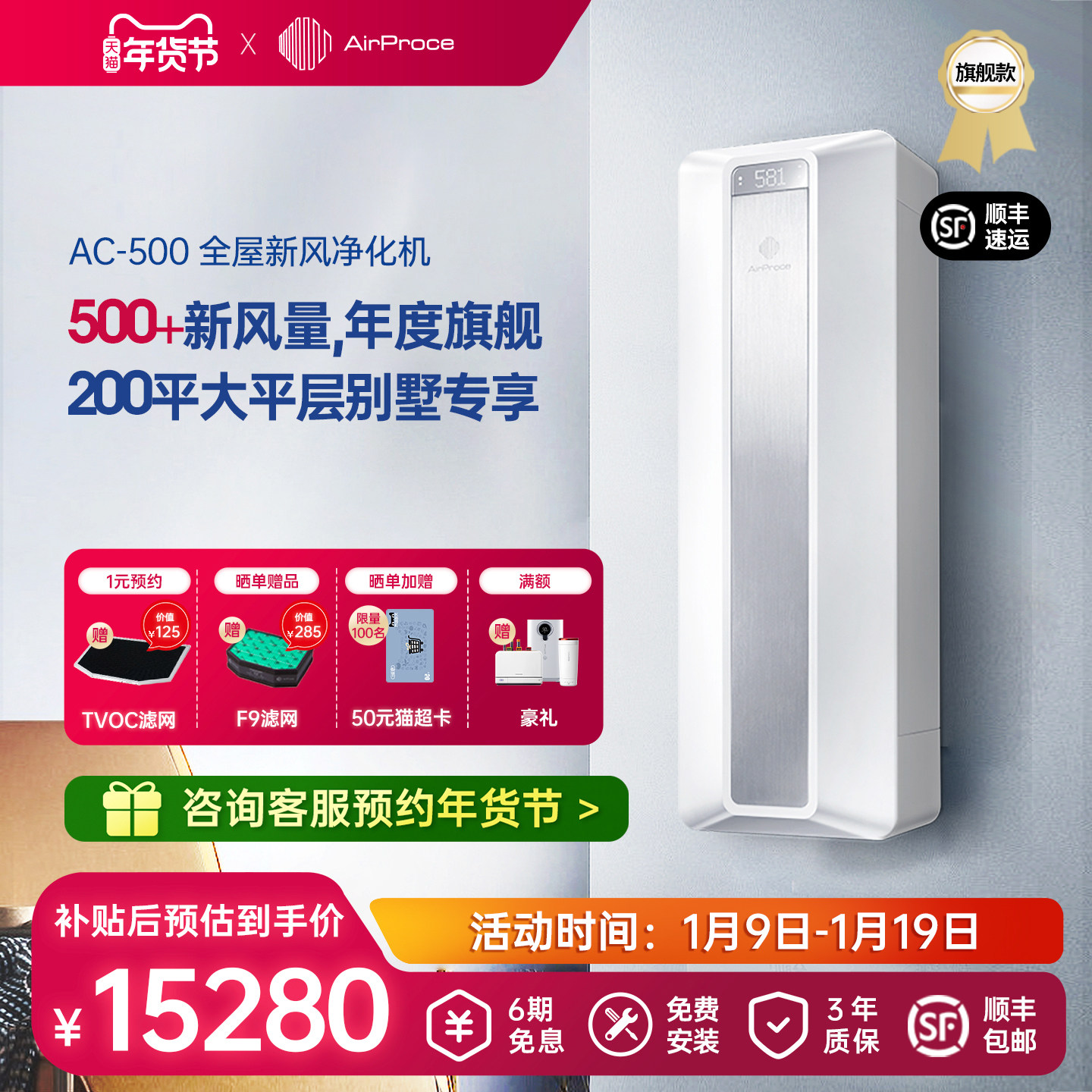 AirProce艾泊斯新风空气净化器AC-500除甲醛新风系统换气净化机
