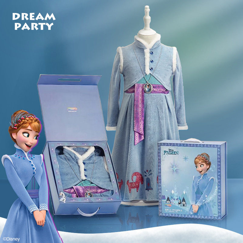 Dreampartybox安娜公主裙迪士尼正版女童秋冬加绒连衣裙天鹅绒