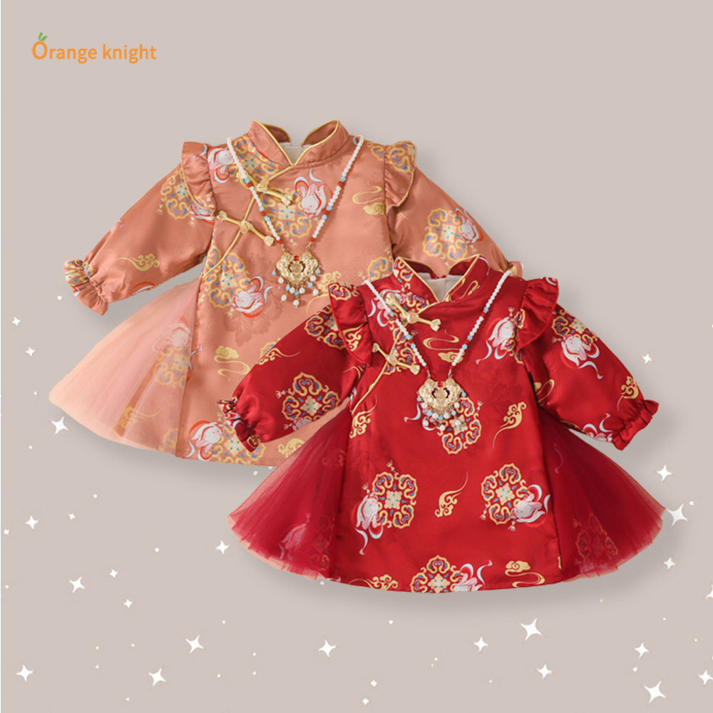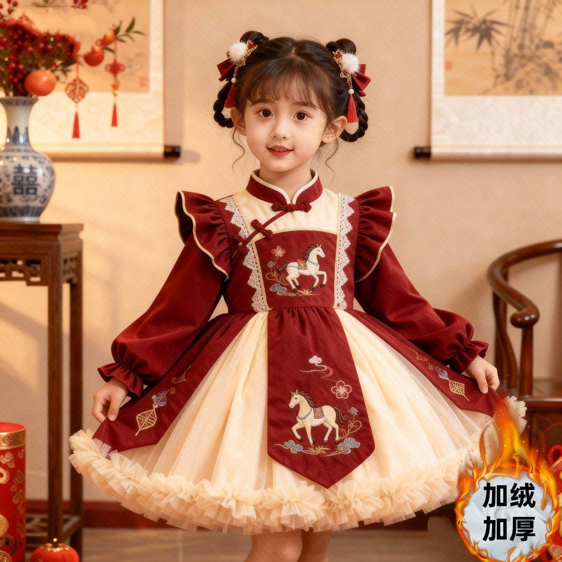 女童旗袍秋冬加绒连衣裙2026新款儿童中国风汉服一岁宝宝冬装裙子