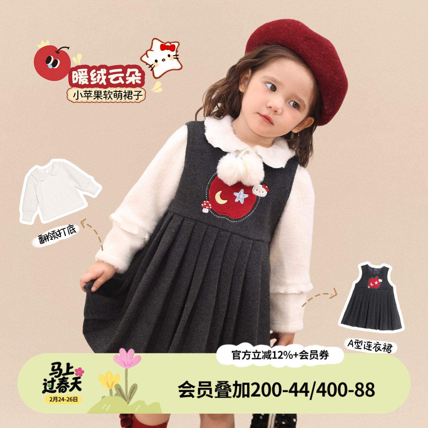 小o爸女婴童 女宝软萌套装2026秋冬加绒连衣裙加厚保暖打底衫冬装