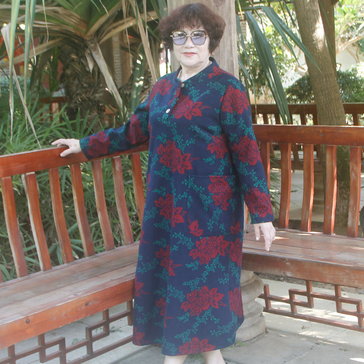 超胖妈妈秋冬加绒连衣裙特大码中老年女装宽松厚中长过膝时尚棉袍