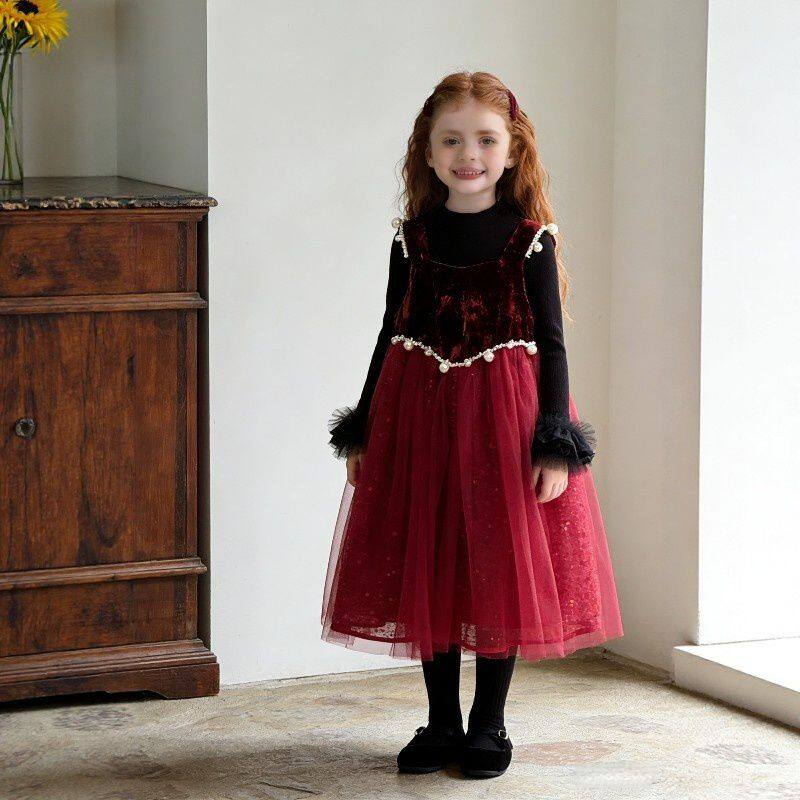 女童洛丽塔秋冬加绒连衣裙新款公主宝宝拜年儿童周岁生日喜庆礼服
