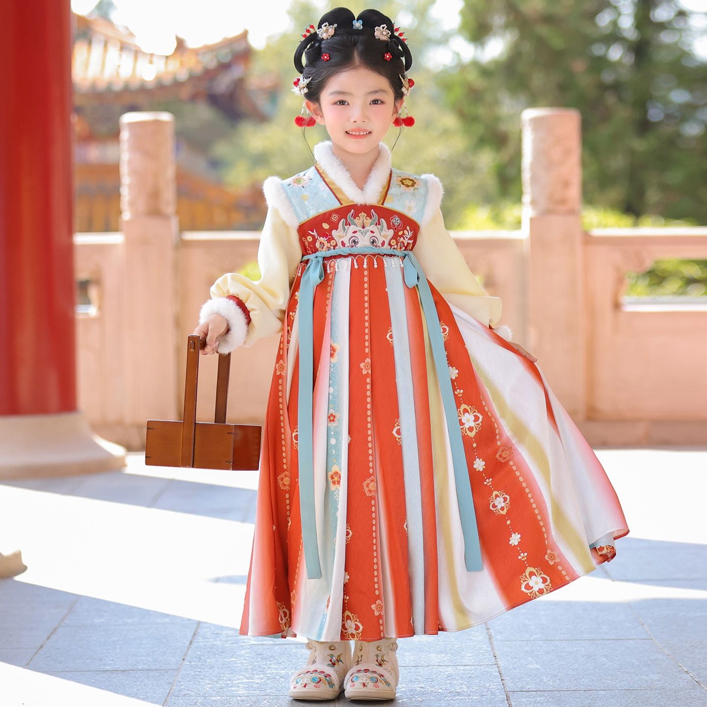 汉服女童秋冬加绒连衣裙2026新款古装拜年服冬季儿童过年国风唐装