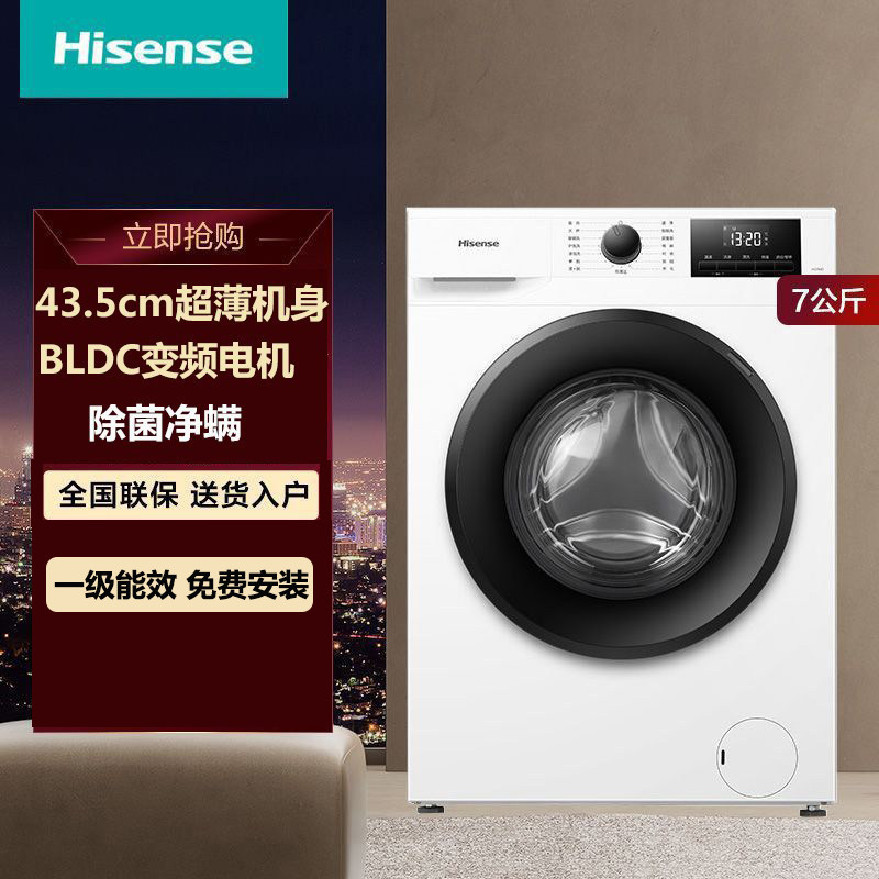海信7公斤滚筒洗衣机全自动变频家用租房超薄洗衣机小型洗脱一体