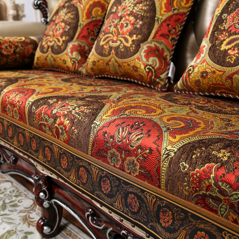 欧式真皮沙发垫套罩高档奢华防滑四季通用雪尼尔坐垫美式风格定做