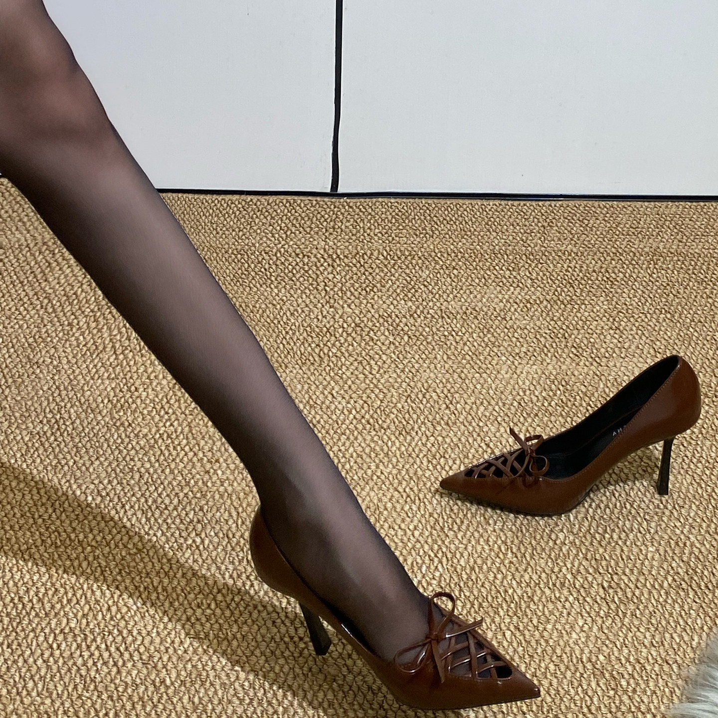 浅口蝴蝶结尖头细跟高跟鞋单鞋相关商品