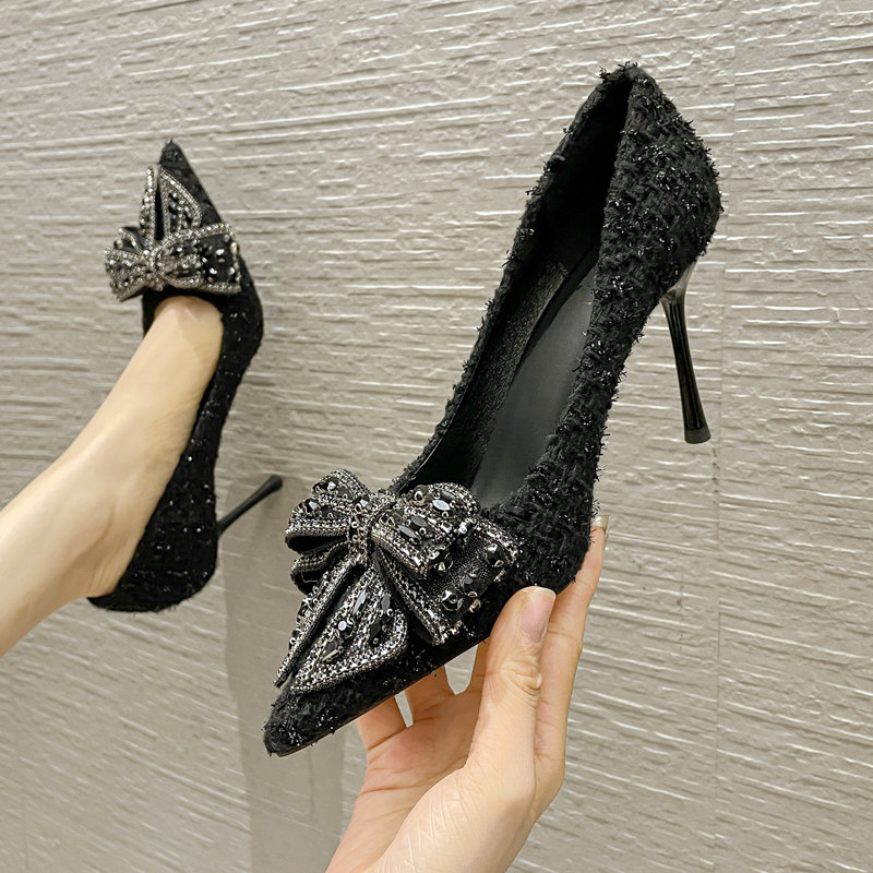 浅口蝴蝶结尖头细跟高跟鞋单鞋相关分类