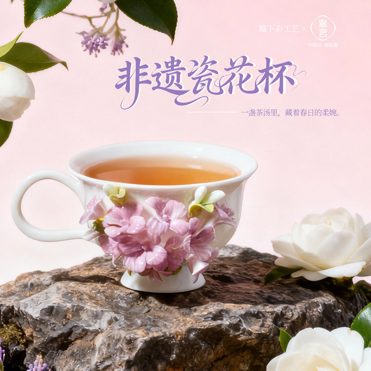 陶瓷非遗牡丹瓷花咖啡杯子生日三八节送女朋友闺蜜新年会礼物定制