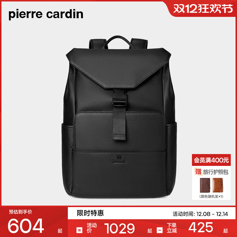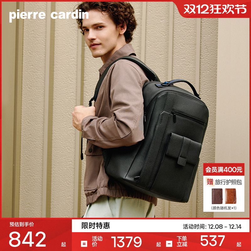 【真皮】皮尔卡丹男包大容量双肩包男士商务电脑通勤背包出差旅行