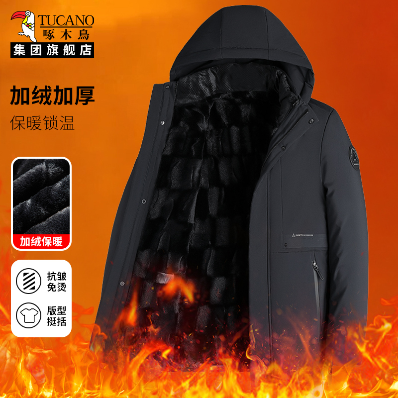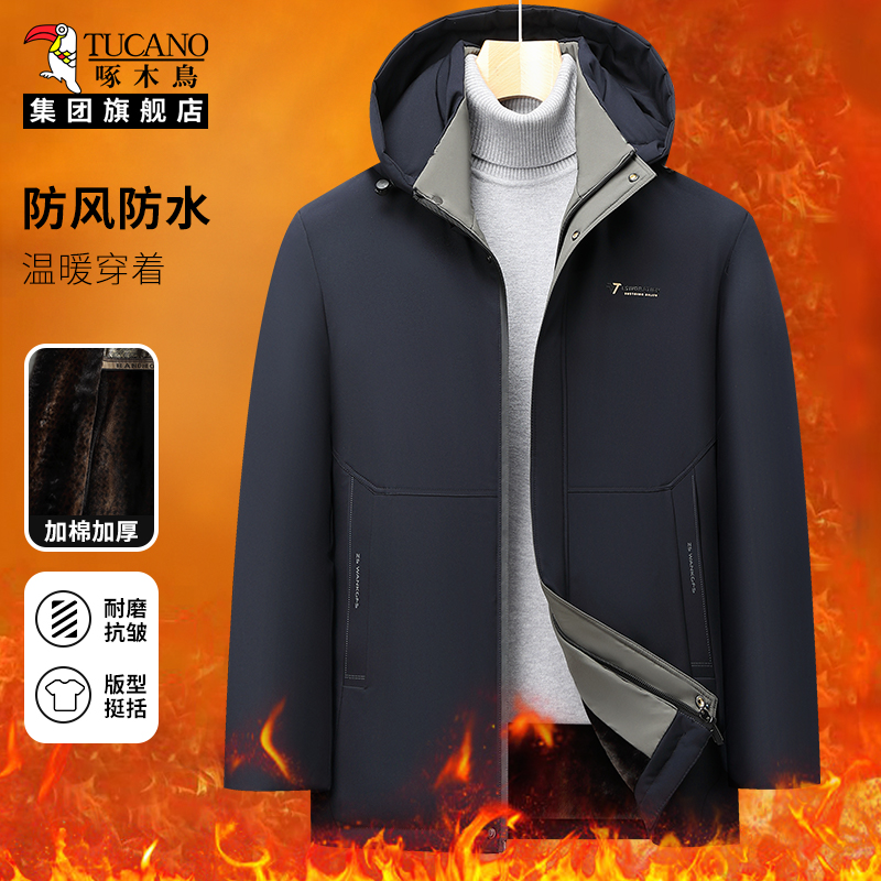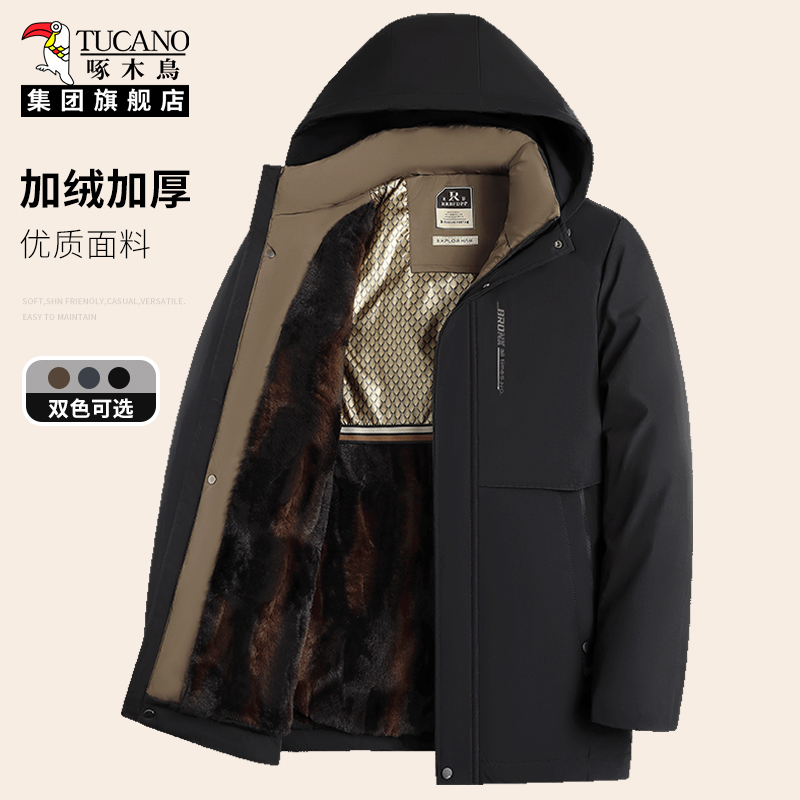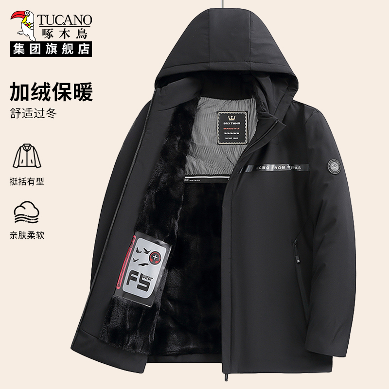 啄木鸟加绒棉服男款2025新款冬季中年爸爸加厚保暖冬装棉衣外套