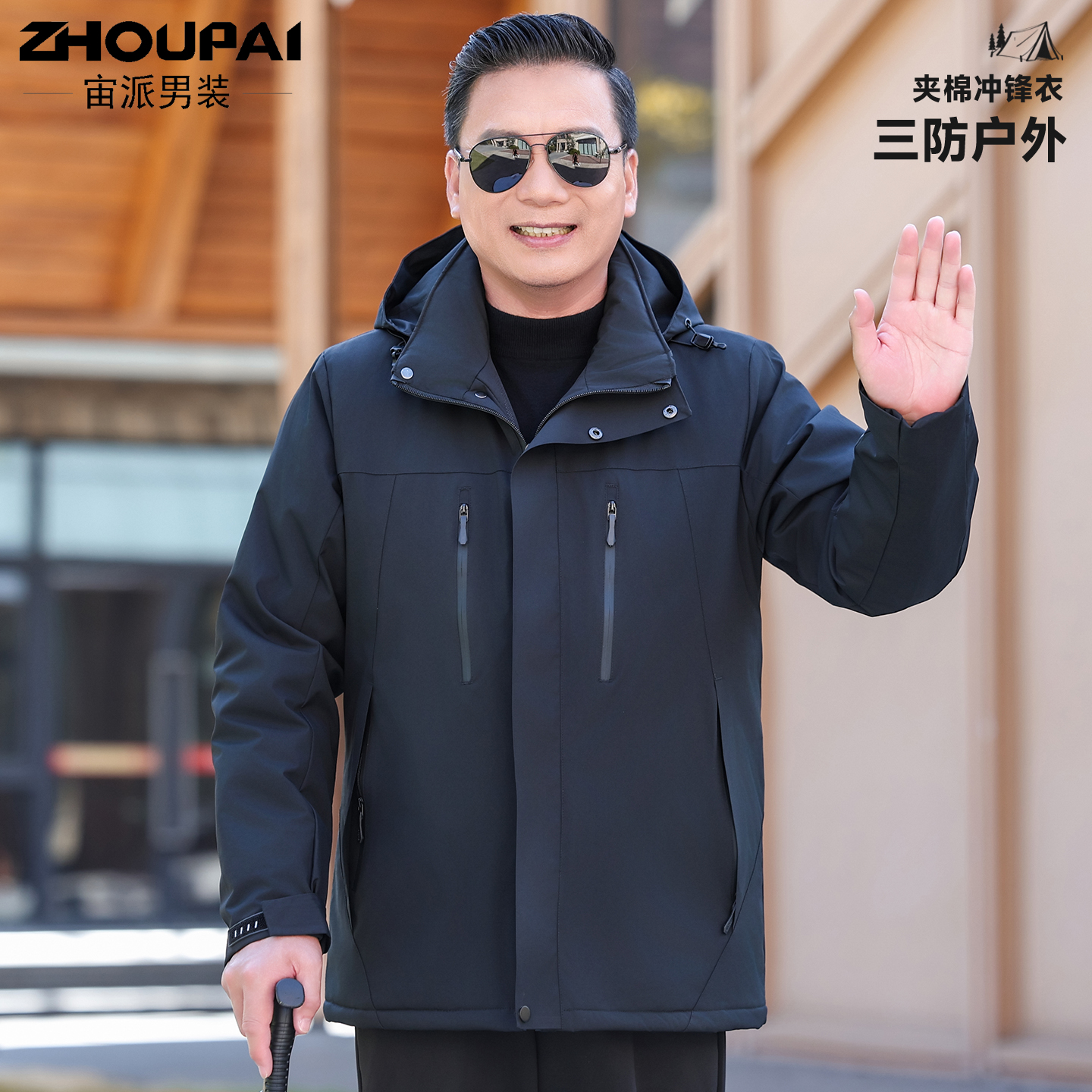 战狼本色飞行员夹克男士冲锋衣外套男秋冬棉服男款潮牌中年爸爸装
