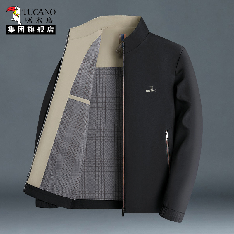 啄木鸟棉服男款2025新款秋冬中年商务夹克立领爸爸装休闲外套上衣
