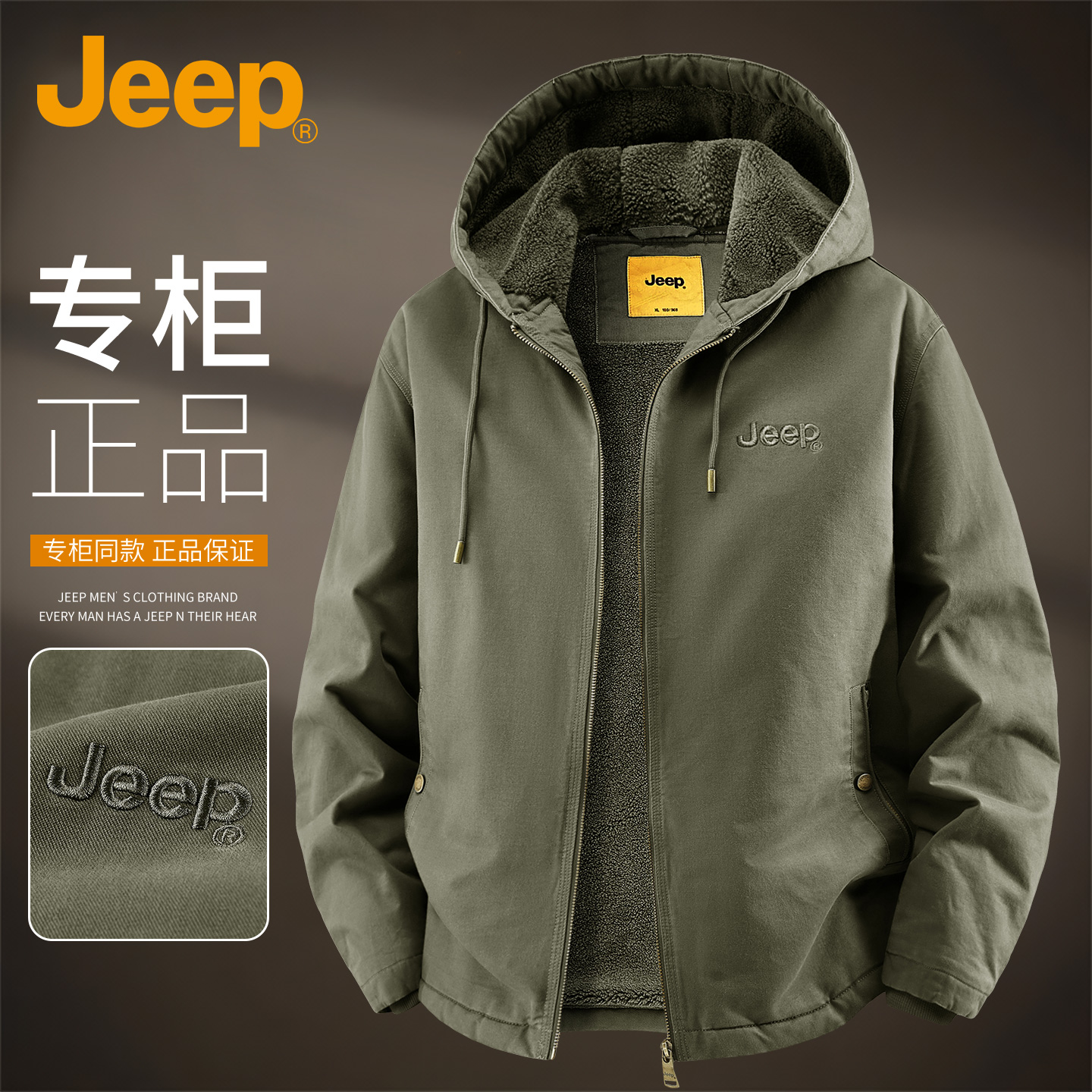 JEEP吉普纯棉棉服男款连帽外套加绒加厚冬季保暖中年爸爸冬装棉袄