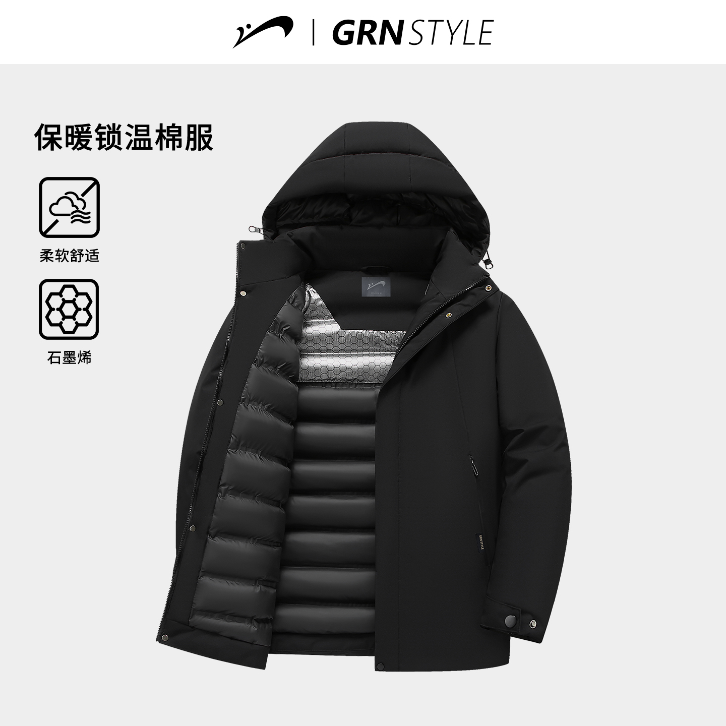 - 棉衣男中长款连帽修身