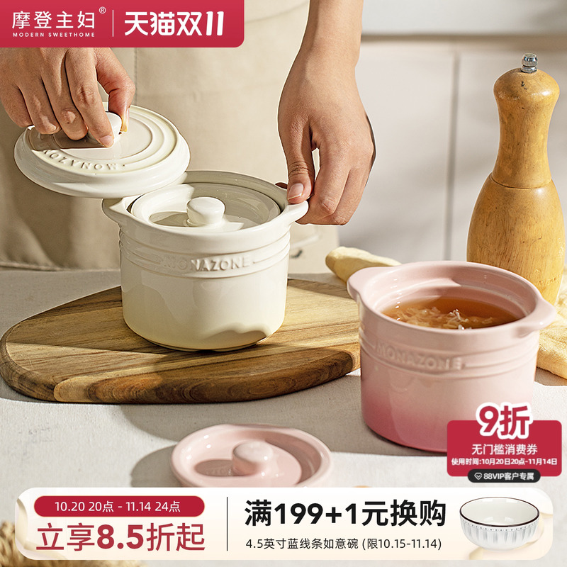 摩登主妇MONAZONE陶瓷炖盅带盖隔水家用瓦罐汤燕窝蒸盅炖罐小汤盅
