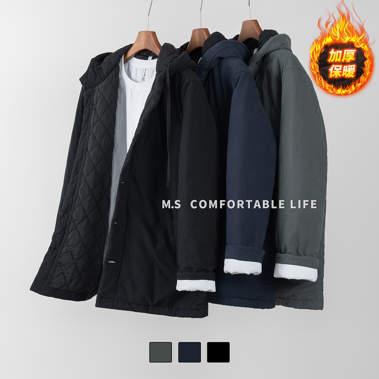 简麻冬季麻尚生活2025连帽加厚保暖中国风男装棉衣外套休闲棉服
