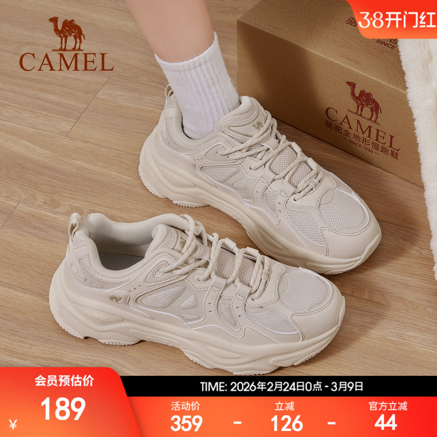 骆驼运动鞋女士2026夏秋季新款跑步百搭女鞋轻便透气网面小白鞋子