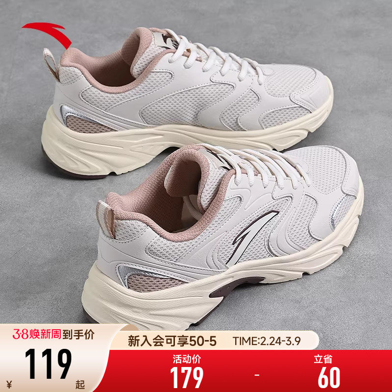 安踏女鞋运动鞋女2026春季软底跑步妈妈鞋子女款网面透气轻便休闲