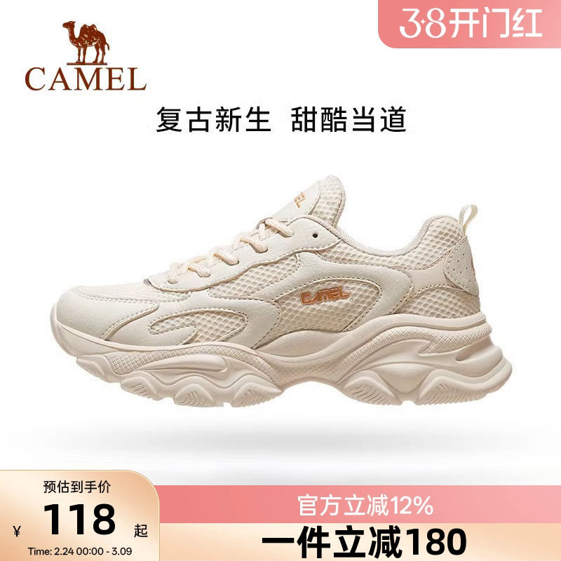 骆驼星火老爹鞋女鞋网面休闲鞋运动鞋厚底缓震百搭鞋子复古跑步鞋
