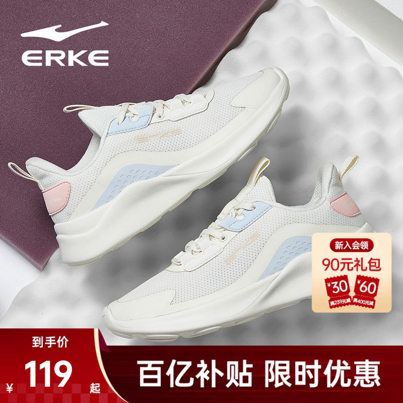 鸿星尔克女鞋春季运动鞋减震跑鞋轻便鞋子学生女款网面软底跑步鞋