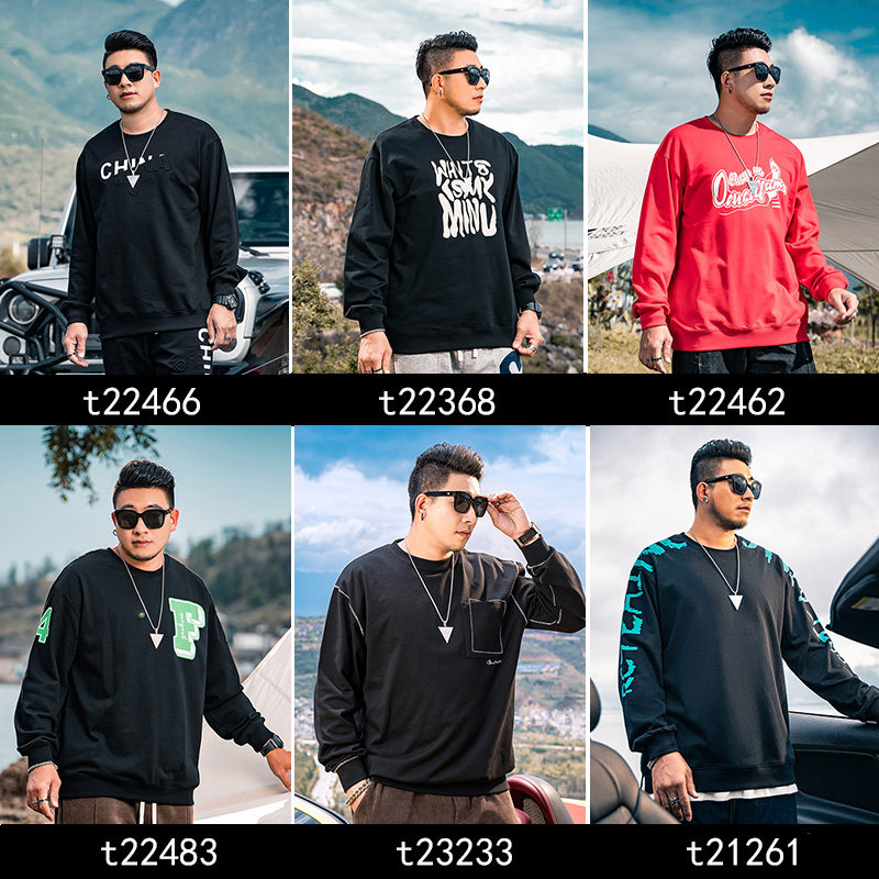 200-300斤大码男装加肥加大码国潮牌圆领胖子加绒加厚卫衣秋冬季
