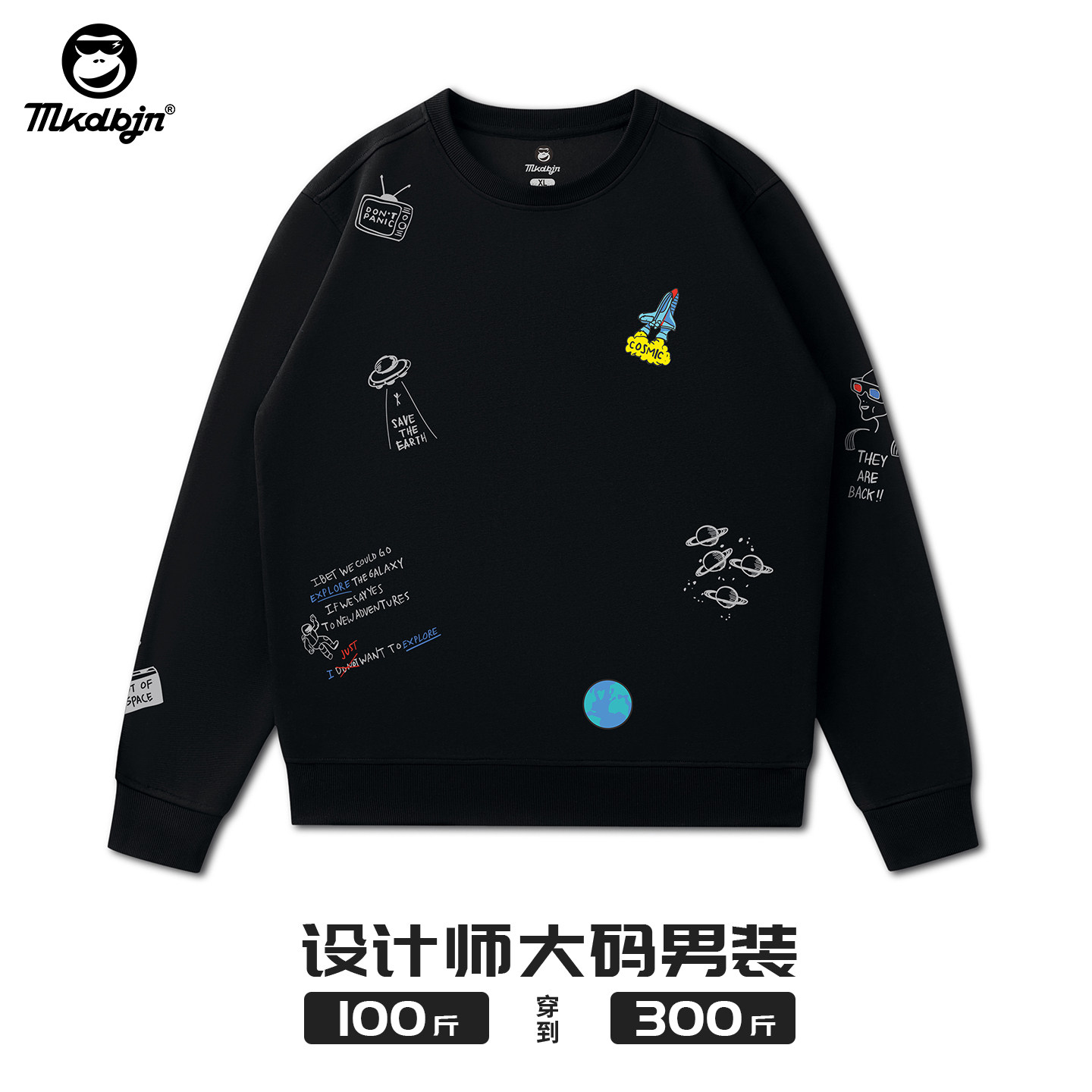mkdbjn猴嘴潮牌大码男装卫衣男加肥加大圆领长袖春秋季2025新款薄