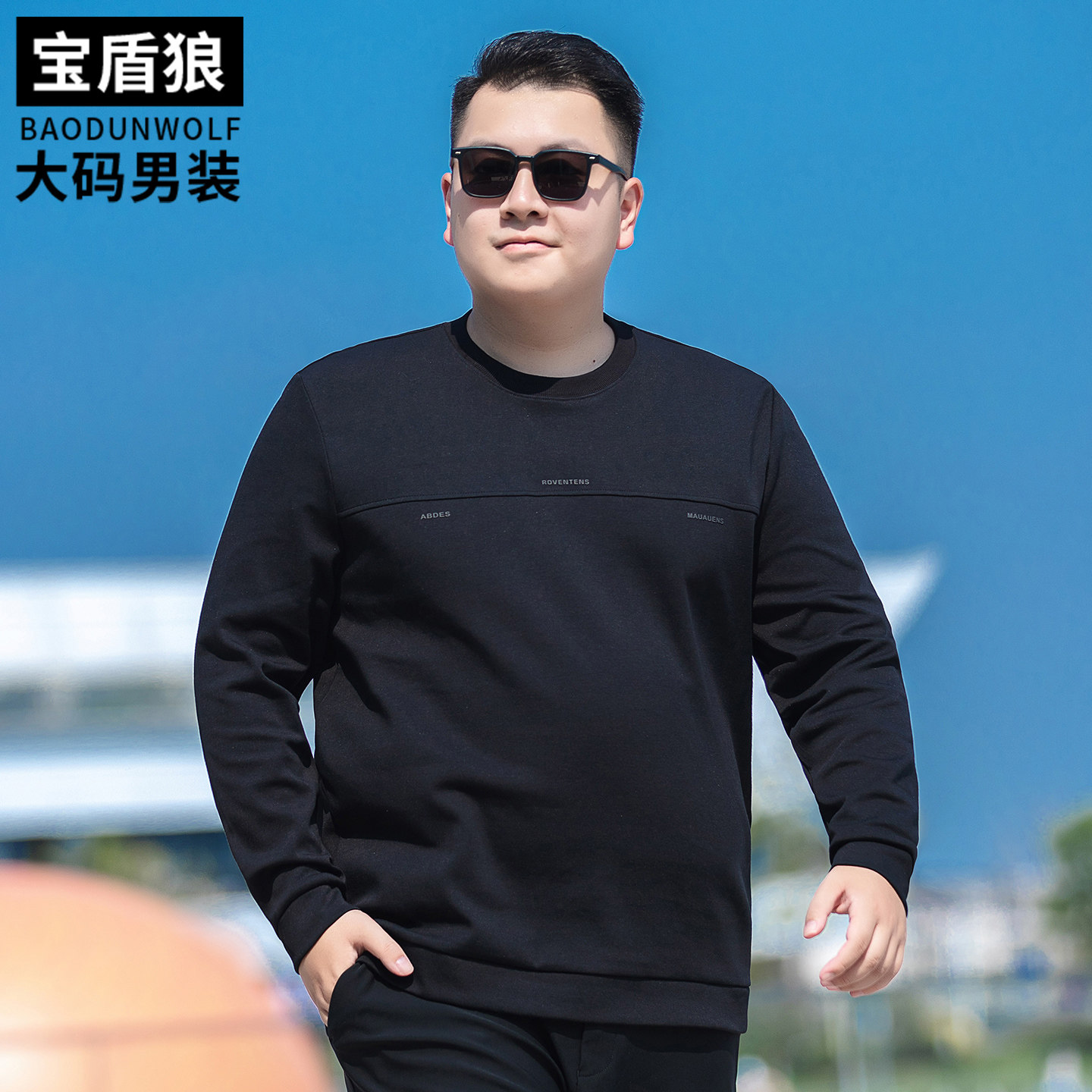 大码卫衣男春秋季休闲宽松圆领长袖打底衫上衣服加肥加大胖子男装