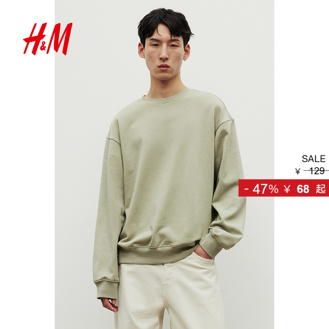 HM男装女装卫衣冬季冬加绒美式情侣圆领落肩袖宽松套头衫0970818