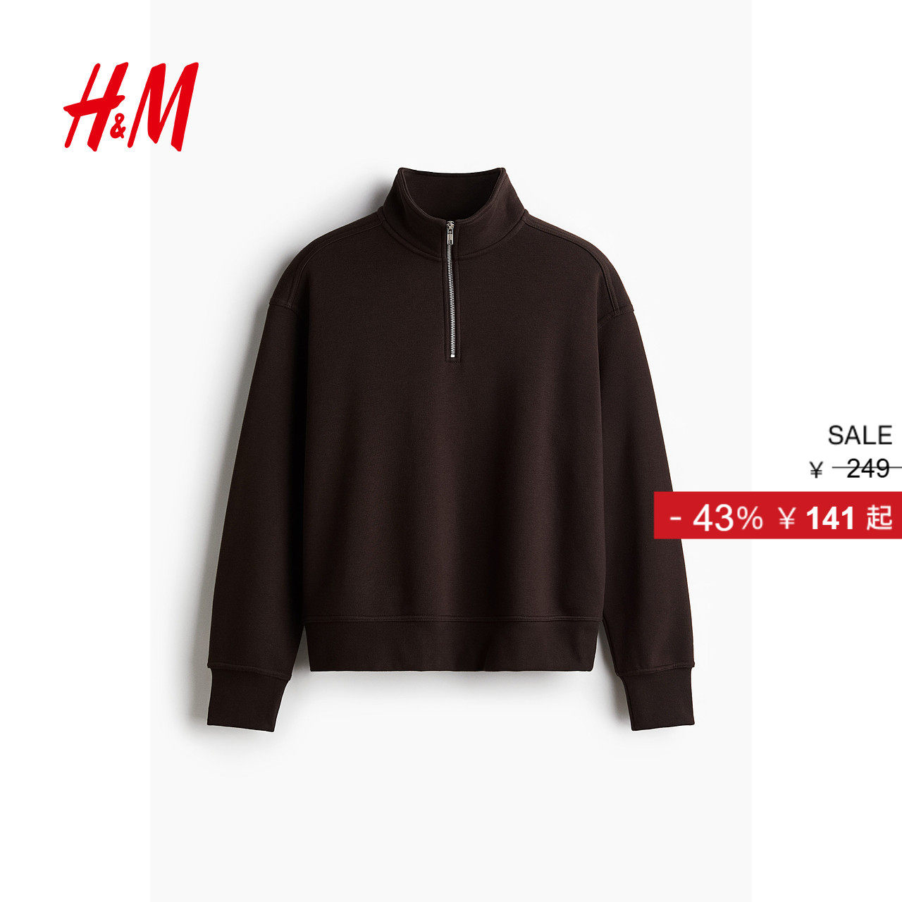 HM男装卫衣冬季加绒立领宽松美式慵懒重磅套头半开襟上衣1245648