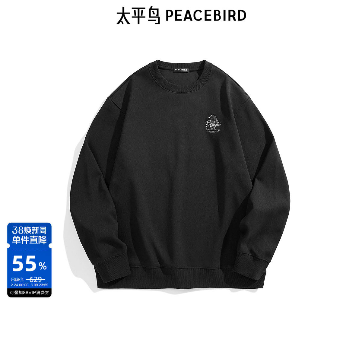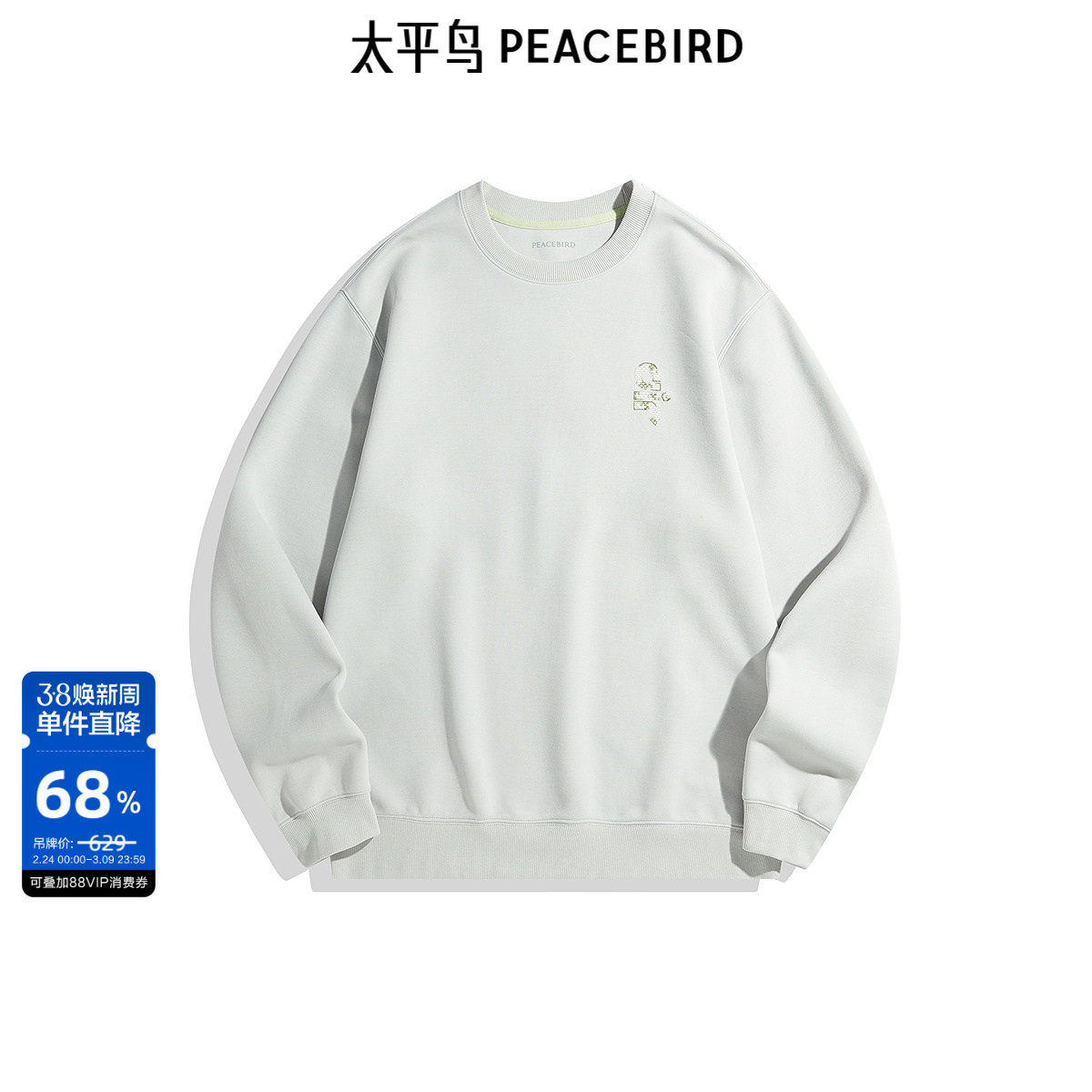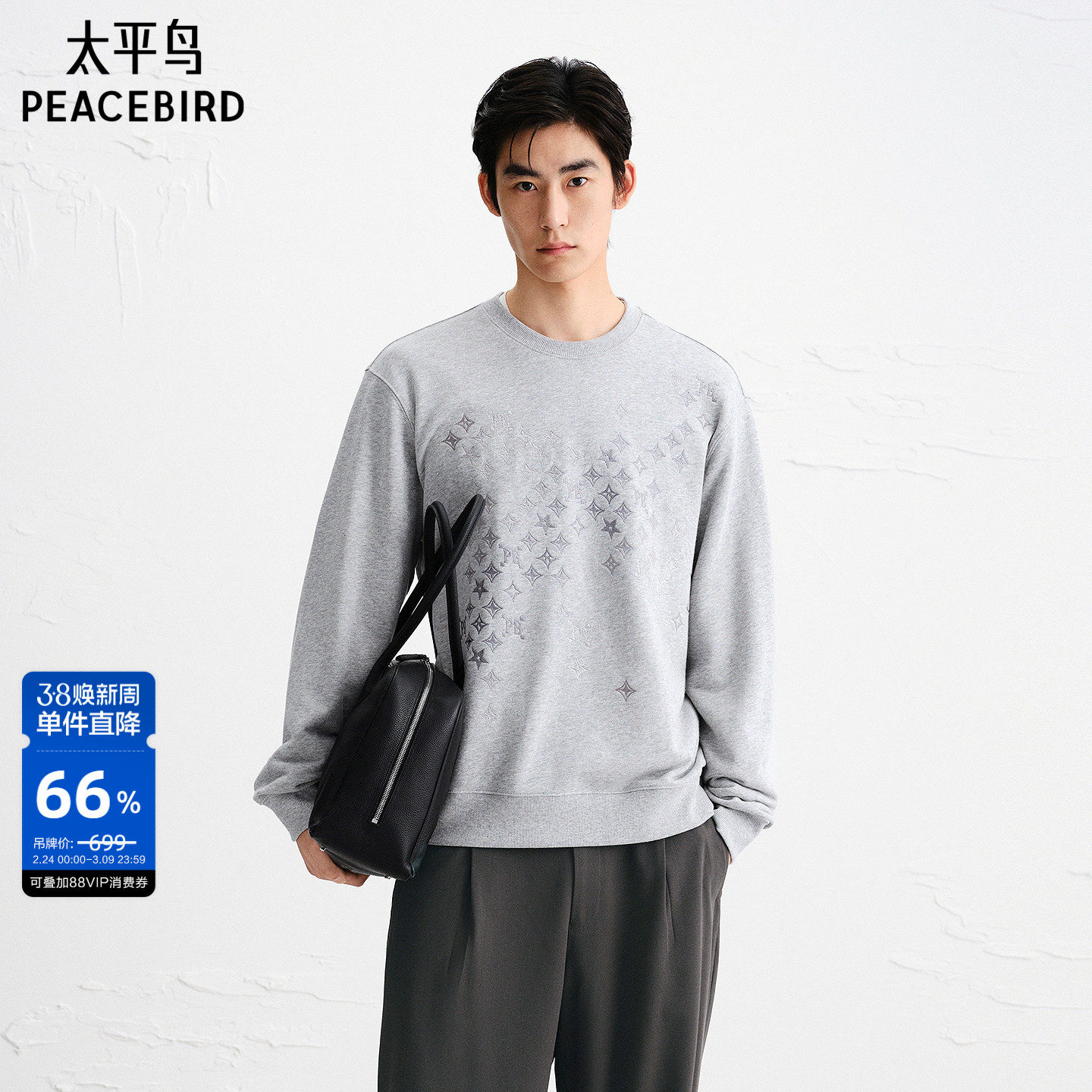 太平鸟男装 休闲卫衣时尚新款男士刺绣卫衣舒适全棉宽松潮流卫衣