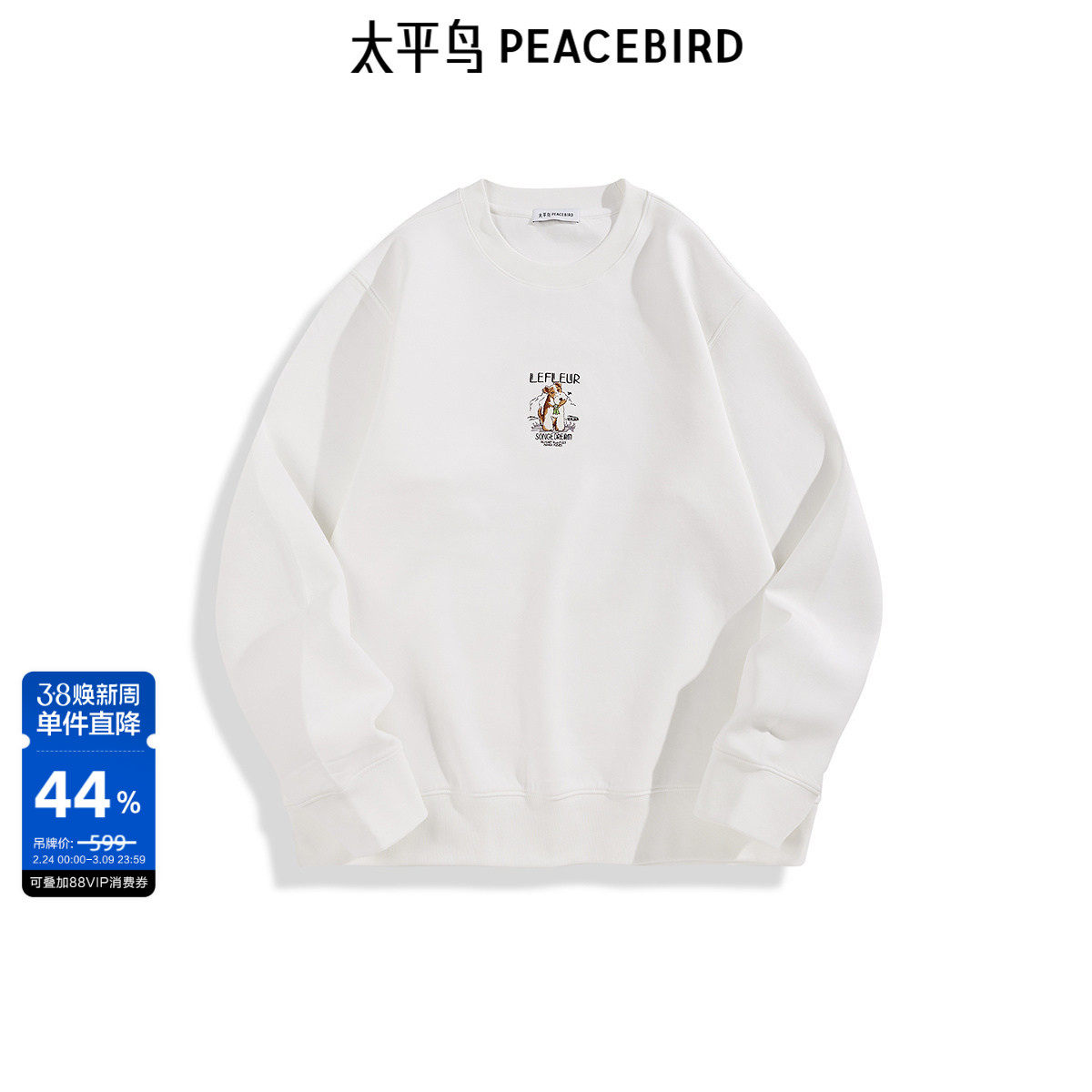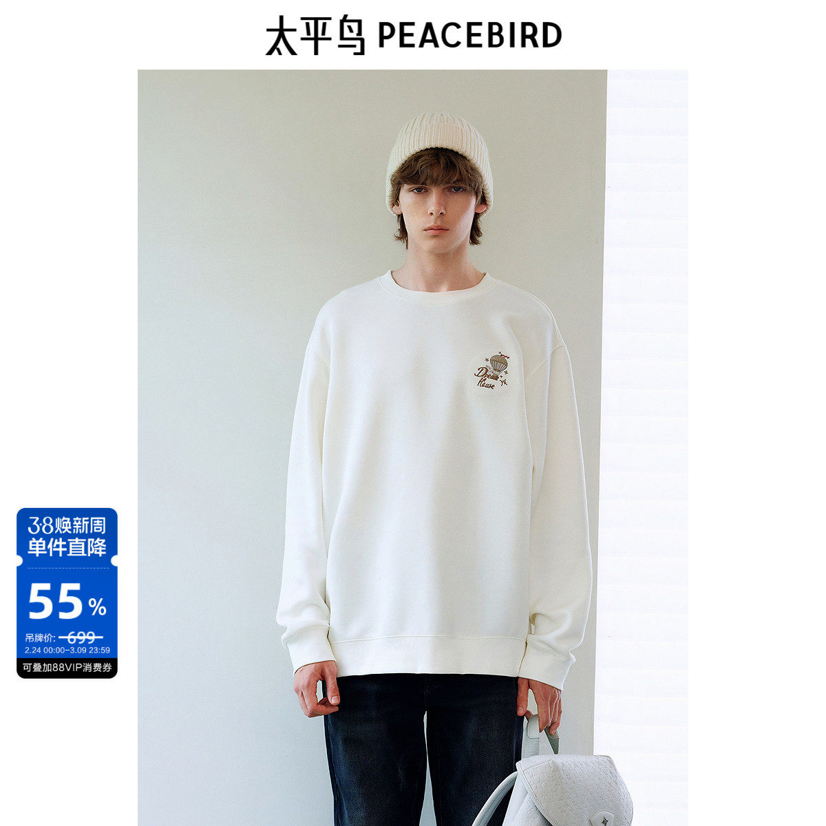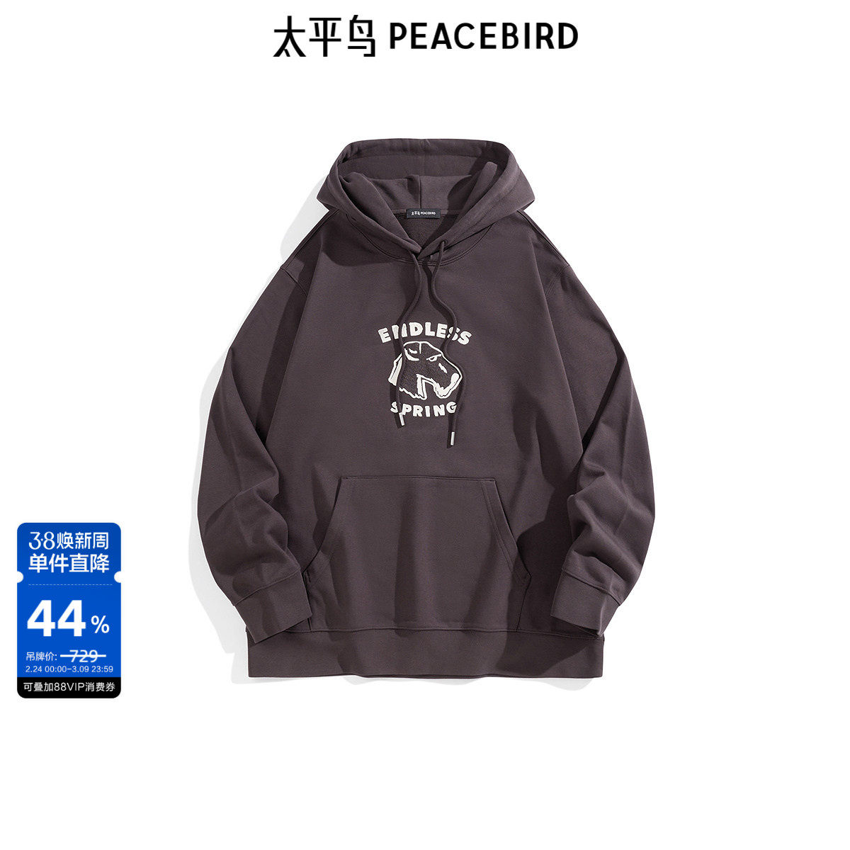 太平鸟男装 休闲卫衣时尚新款男士刺绣卫衣舒适全棉宽松潮流卫衣