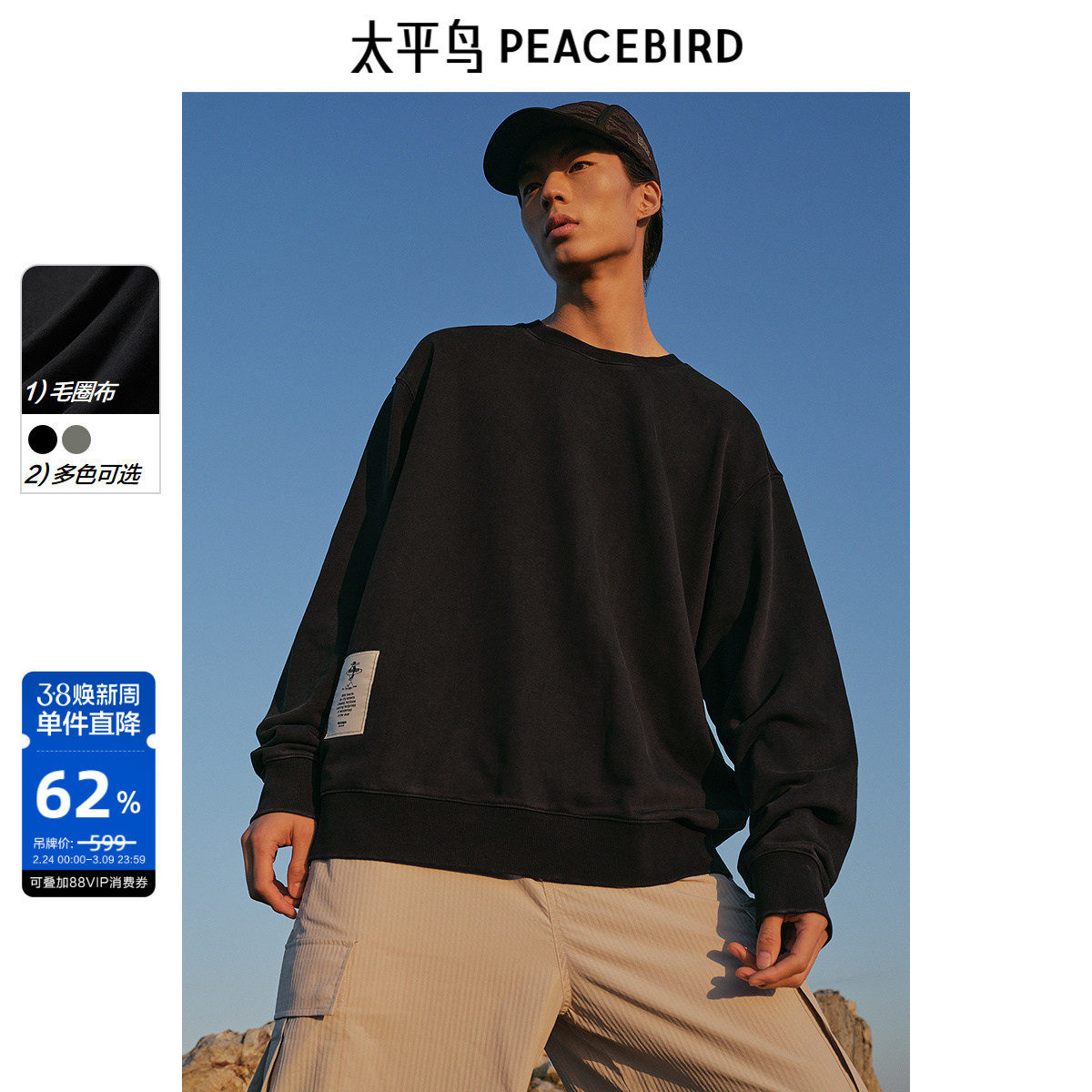 太平鸟男装 休闲卫衣2025春季新款宽松水洗重磅卫衣男士时尚卫衣