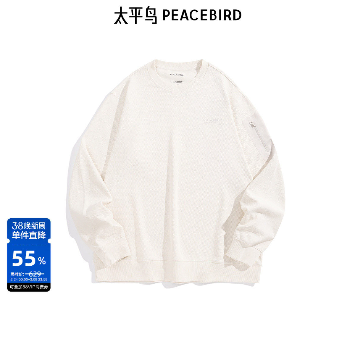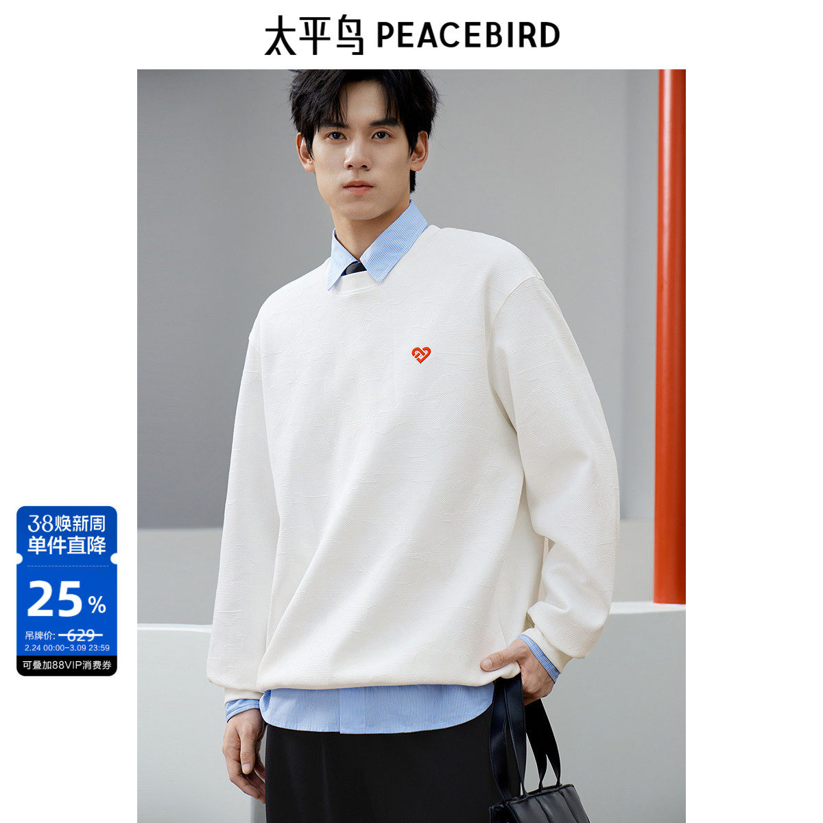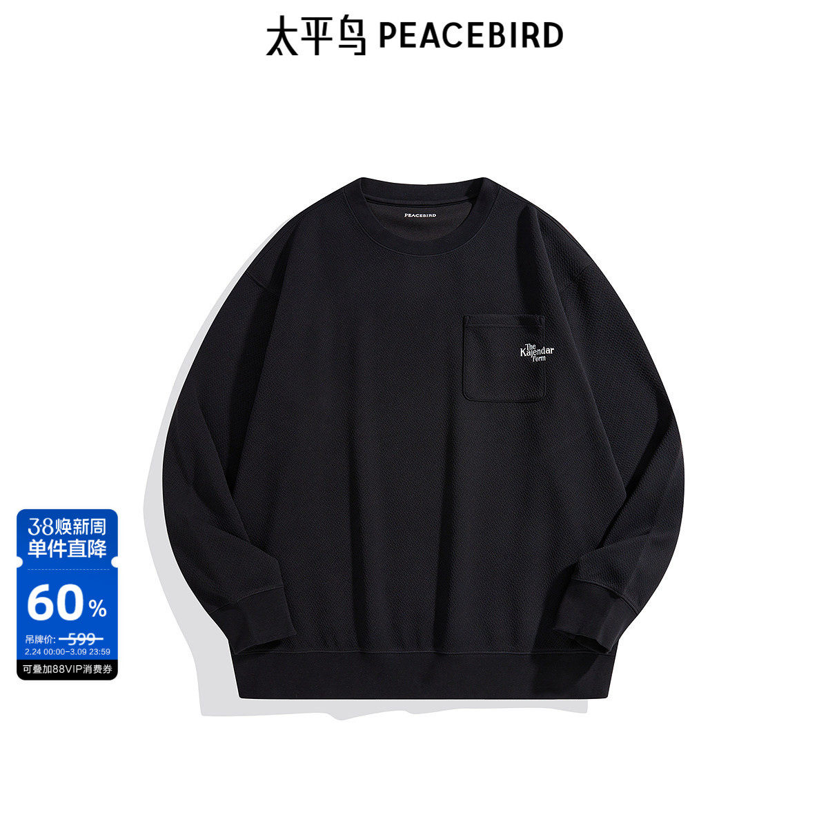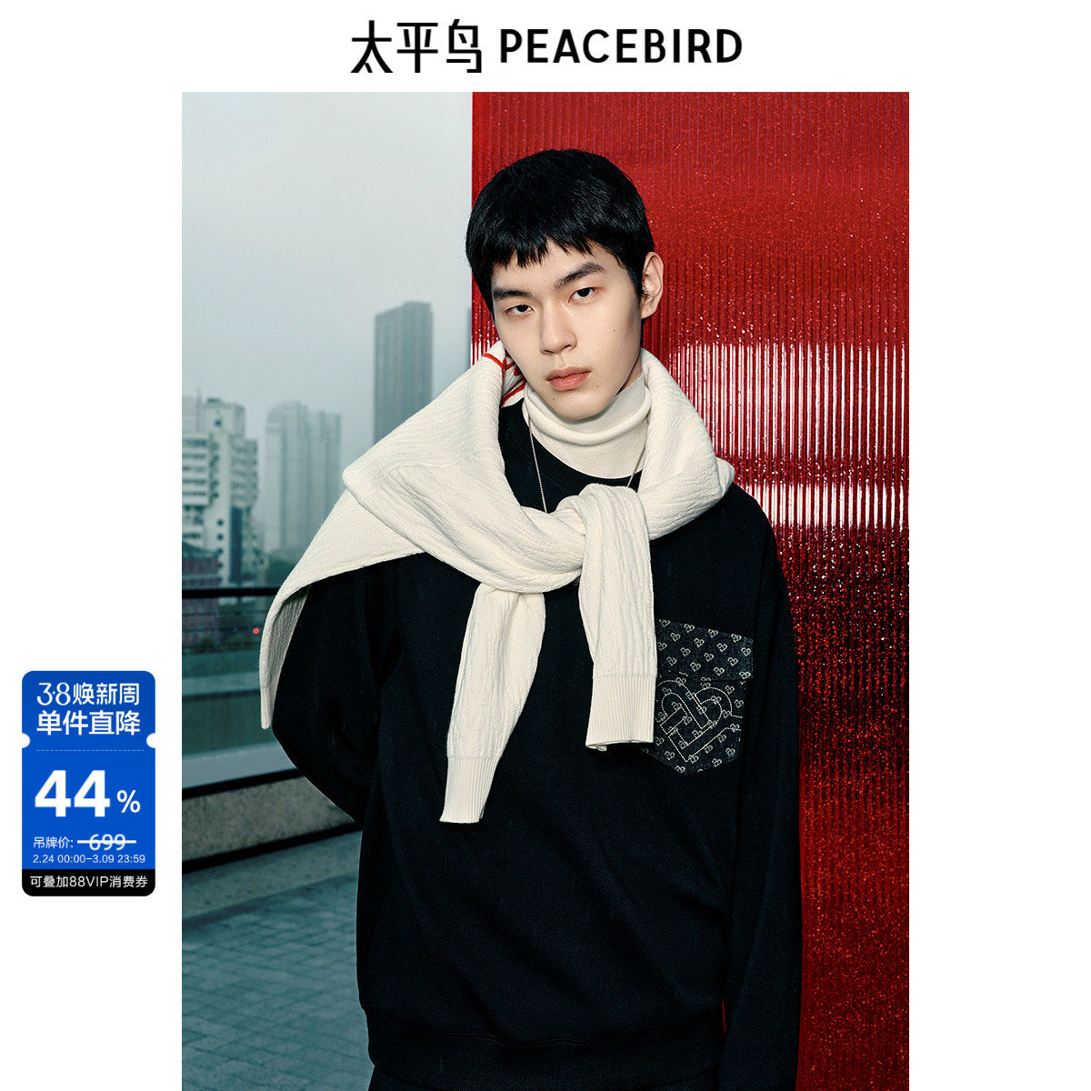 太平鸟男装 休闲卫衣男士时尚经典潮流肌理感面料圆领套头卫衣男