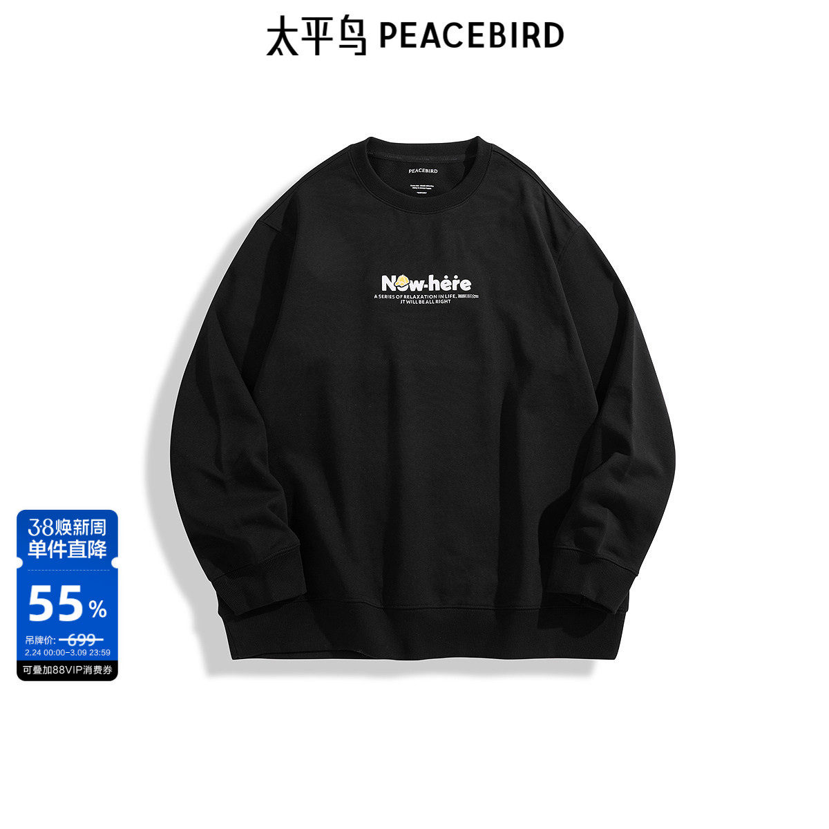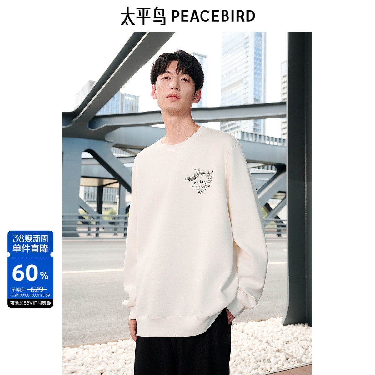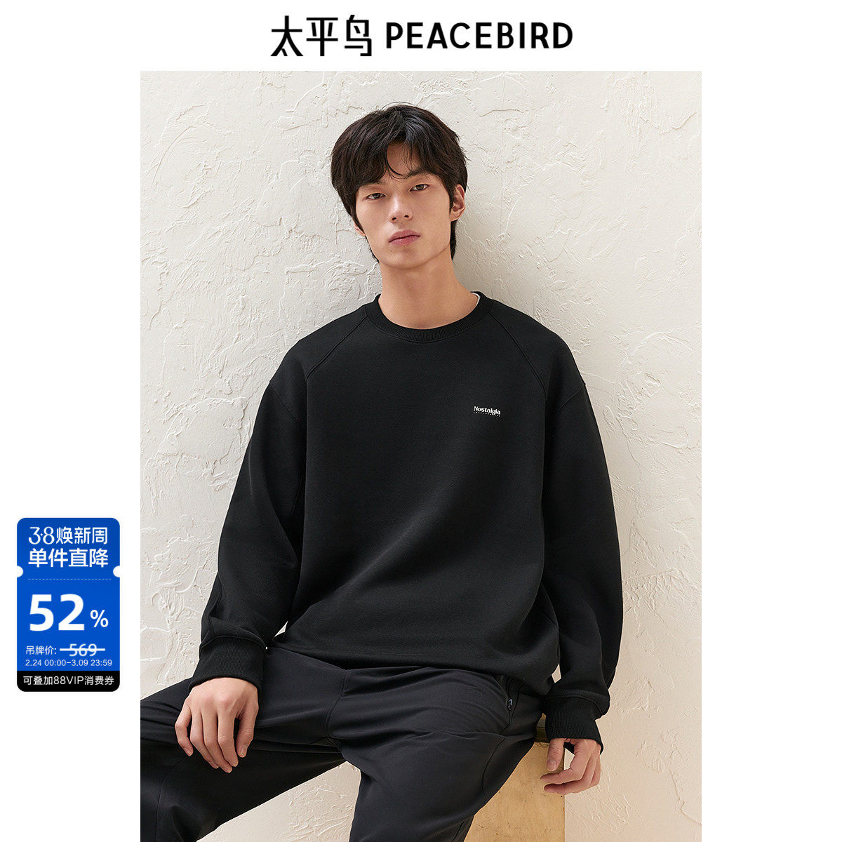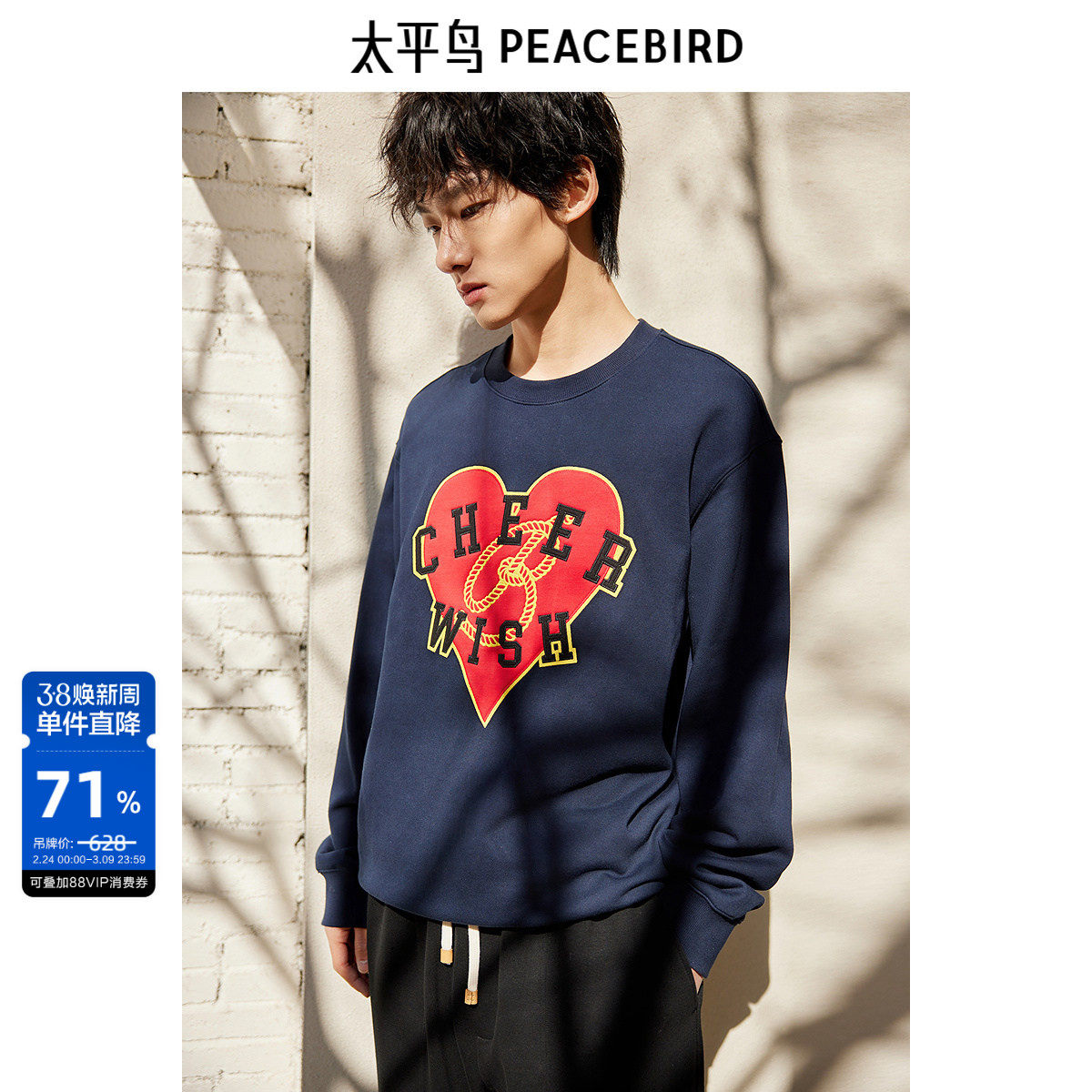 太平鸟男装 休闲卫衣男士时尚经典潮流春季圆领套头卫衣男士上衣
