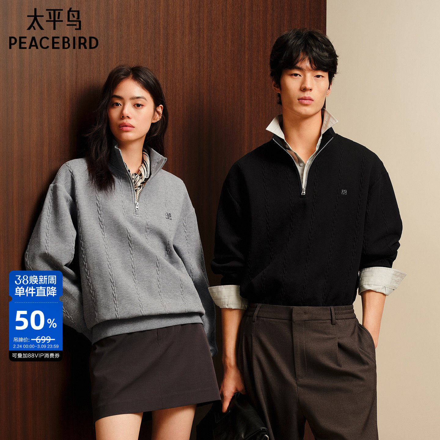 太平鸟男装 休闲卫衣时尚新款26春季新款高支高密半开襟休闲卫衣